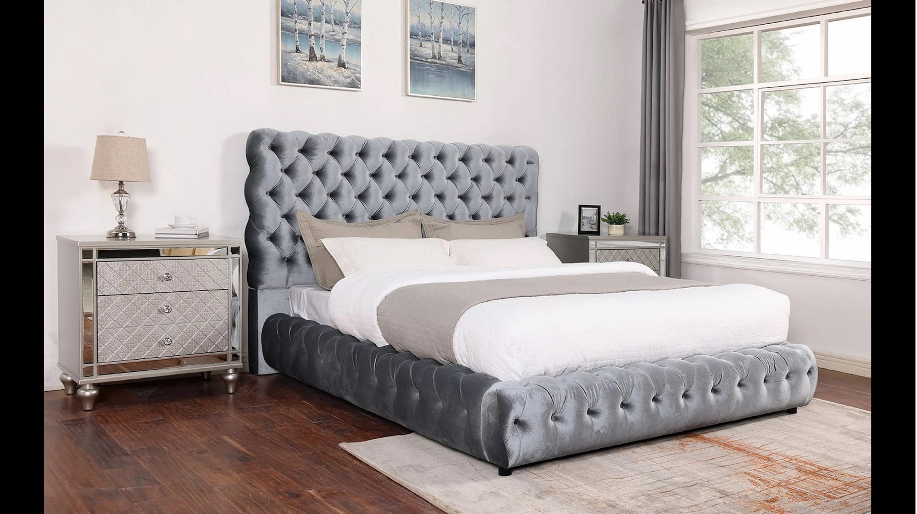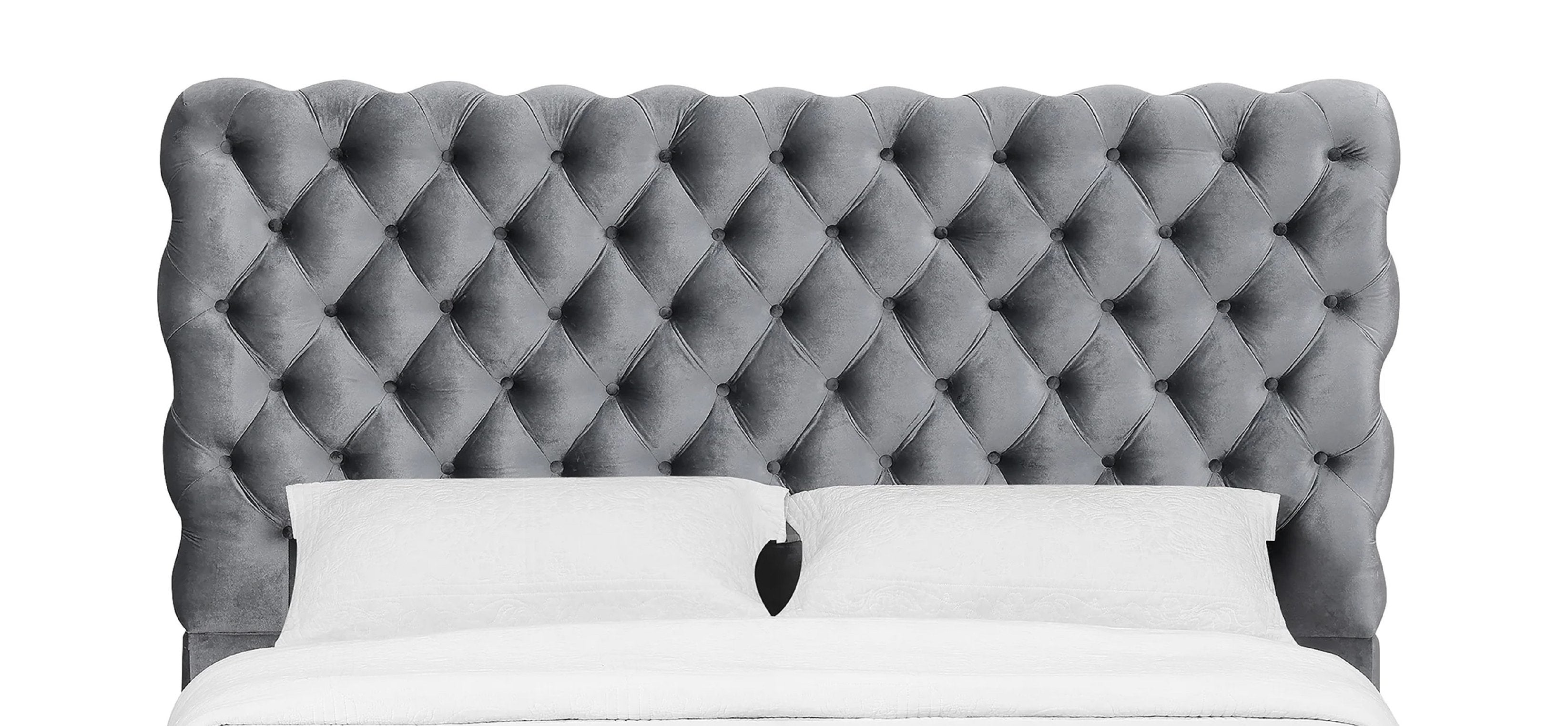 - Upholstery: Soft, durable gray fabric with deep button tufting for a sophisticated, textured look.