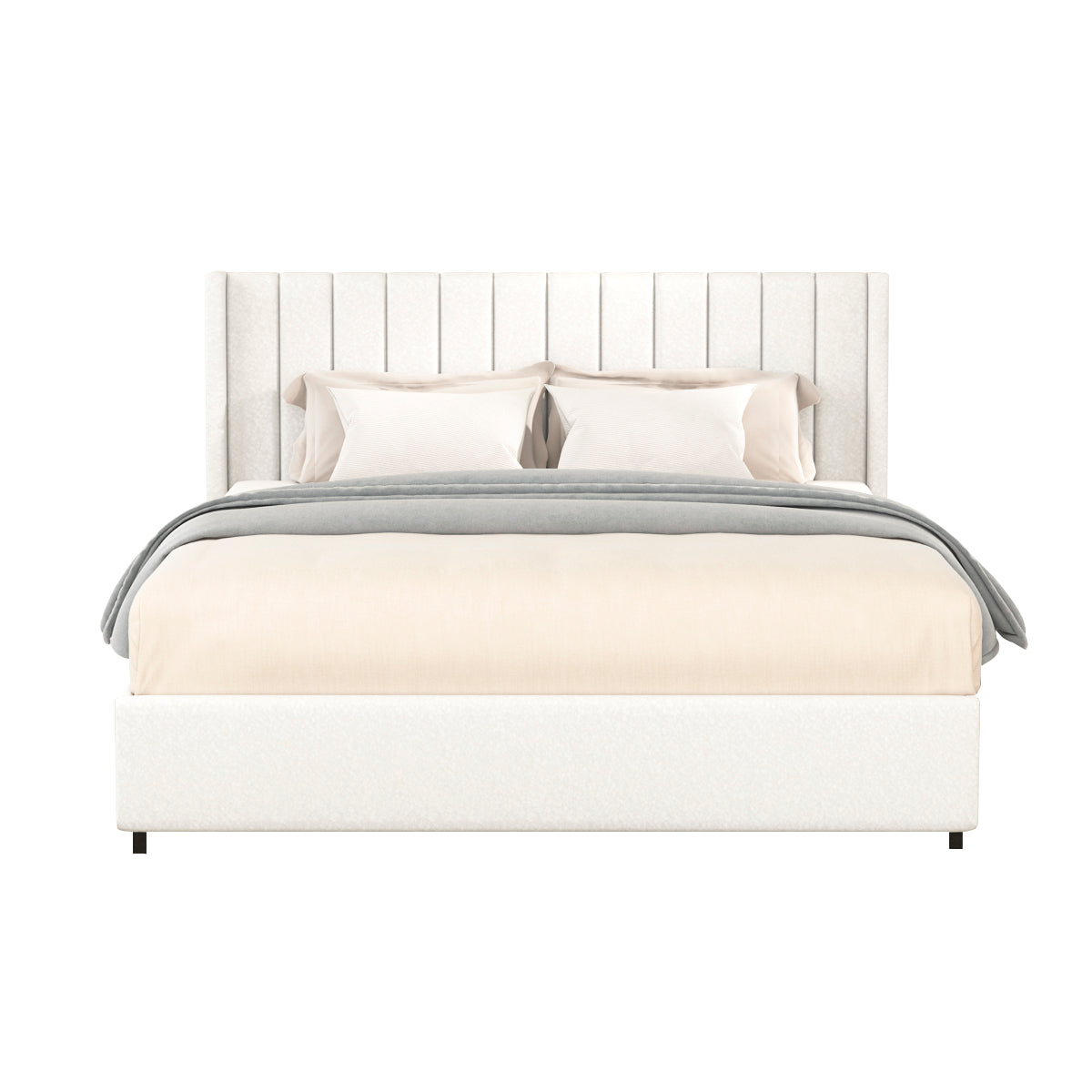 - [LUXURY COMFORT] Crafted with our creamy ivory soft-to-the-touch boucle fabric with a wingback headboard using vertical channel tufted. The channeling is a technique used in upholstery where fabric is pulled tightly over padding and secured, creating parallel channels or grooves. This gives the headboard a textured and elegant appearance.