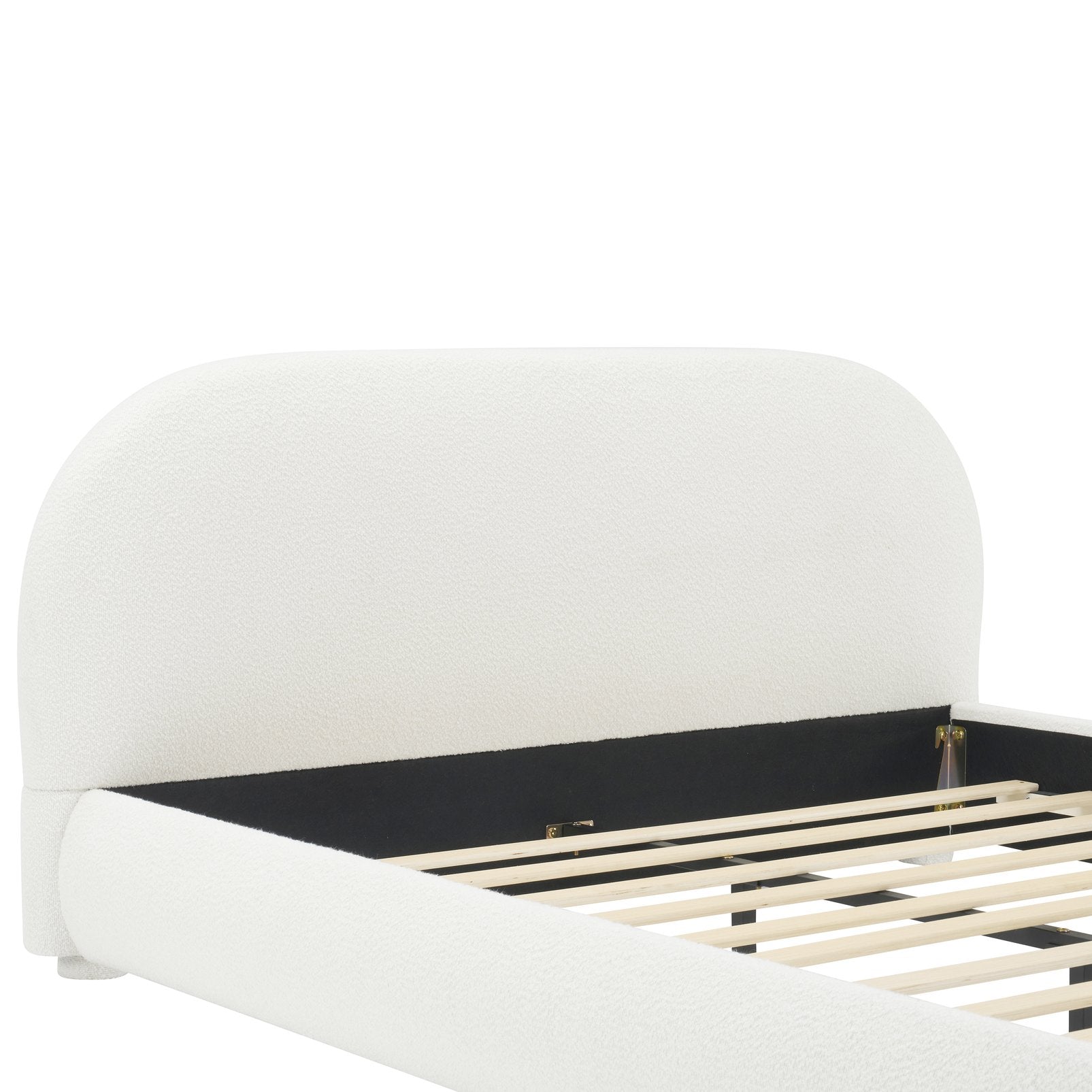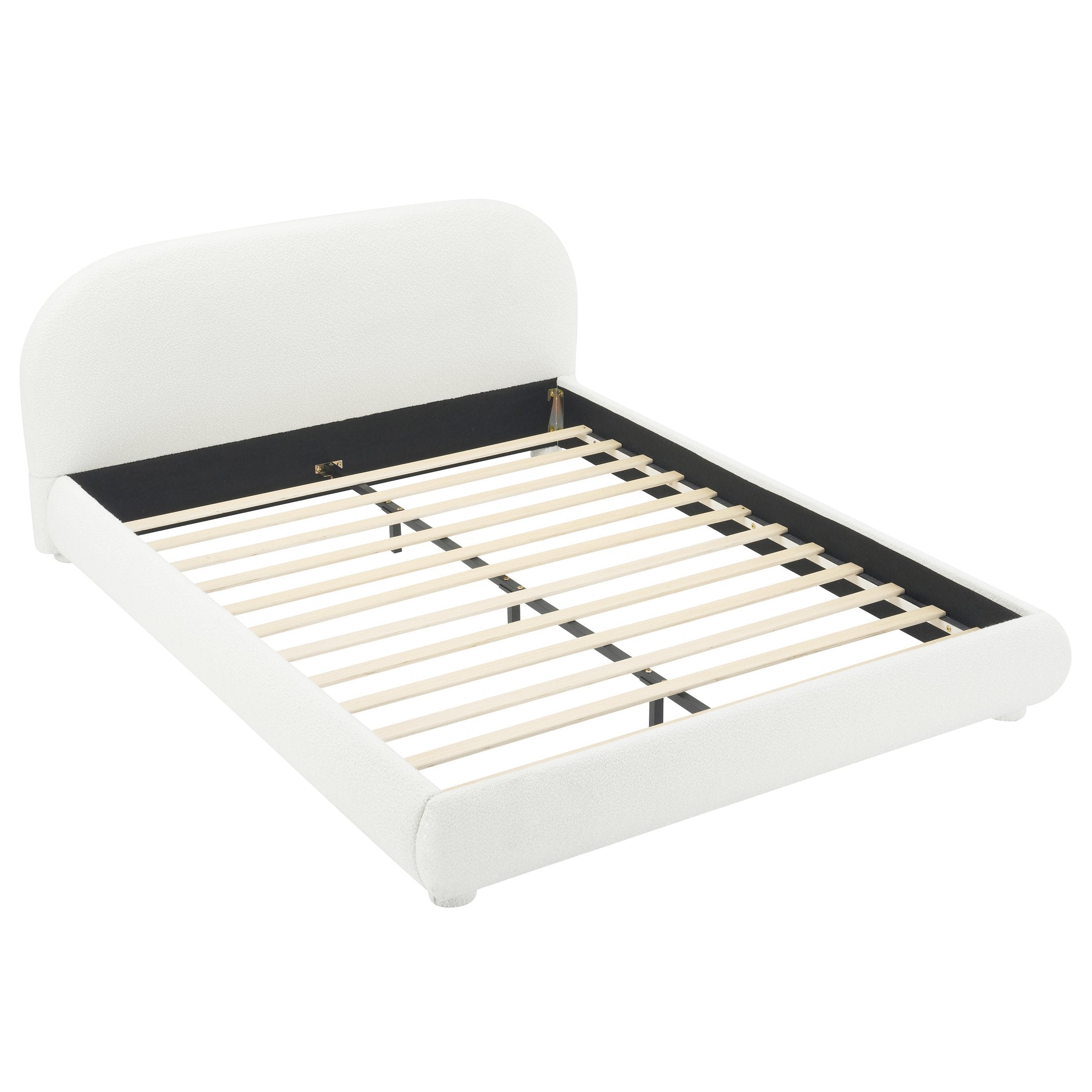 Bring understated elegance and reliable comfort to your bedroom with this cream fabric upholstered bed. Its warm creamy tones and textured granular fabric create a cozy, inviting atmosphere while the curved headboard provides both visual appeal and ergonomic support. Built for durability and everyday use, this modern double/queen bed combines style, comfort, and strength for a restful night's sleep.