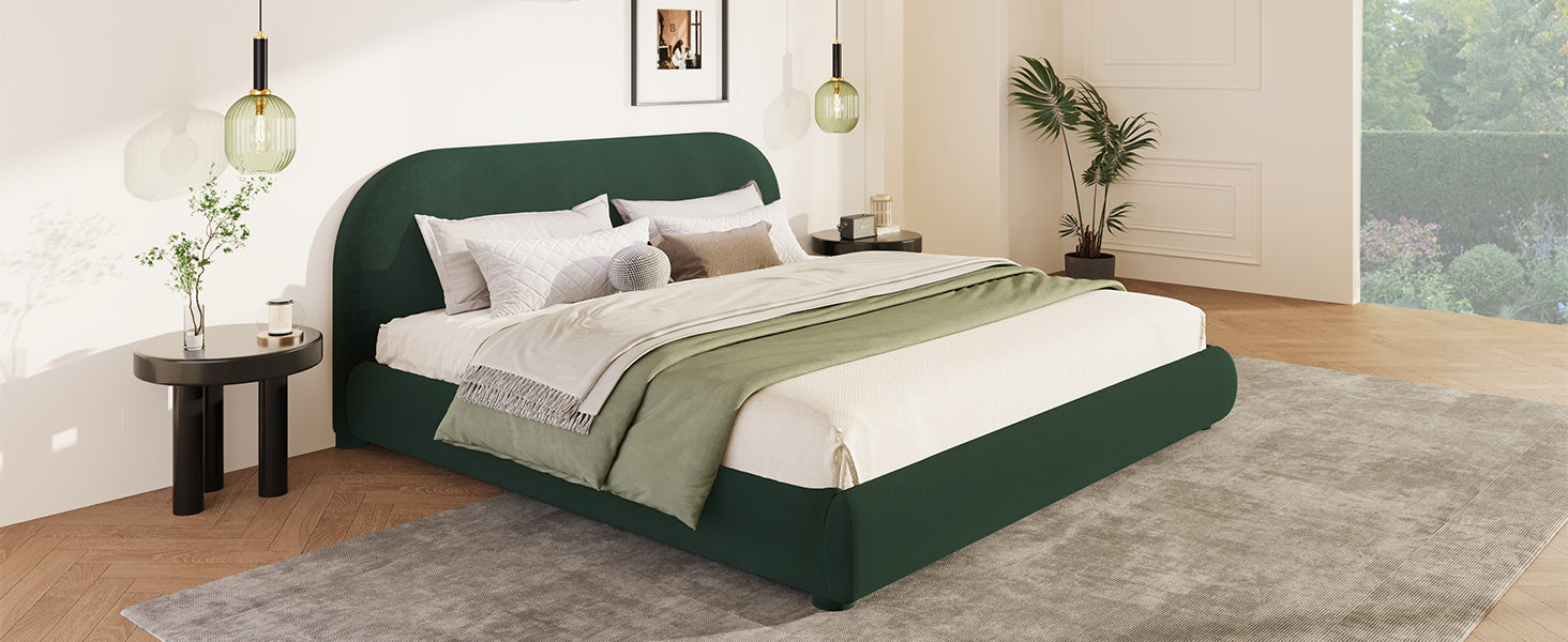 Transform your bedroom into a refined retreat with this dark green velvet queen bed that blends sumptuous texture and modern curves for a light-luxury look. Designed for comfort, durability, and easy care, it creates a high-end atmosphere while remaining practical for everyday use.