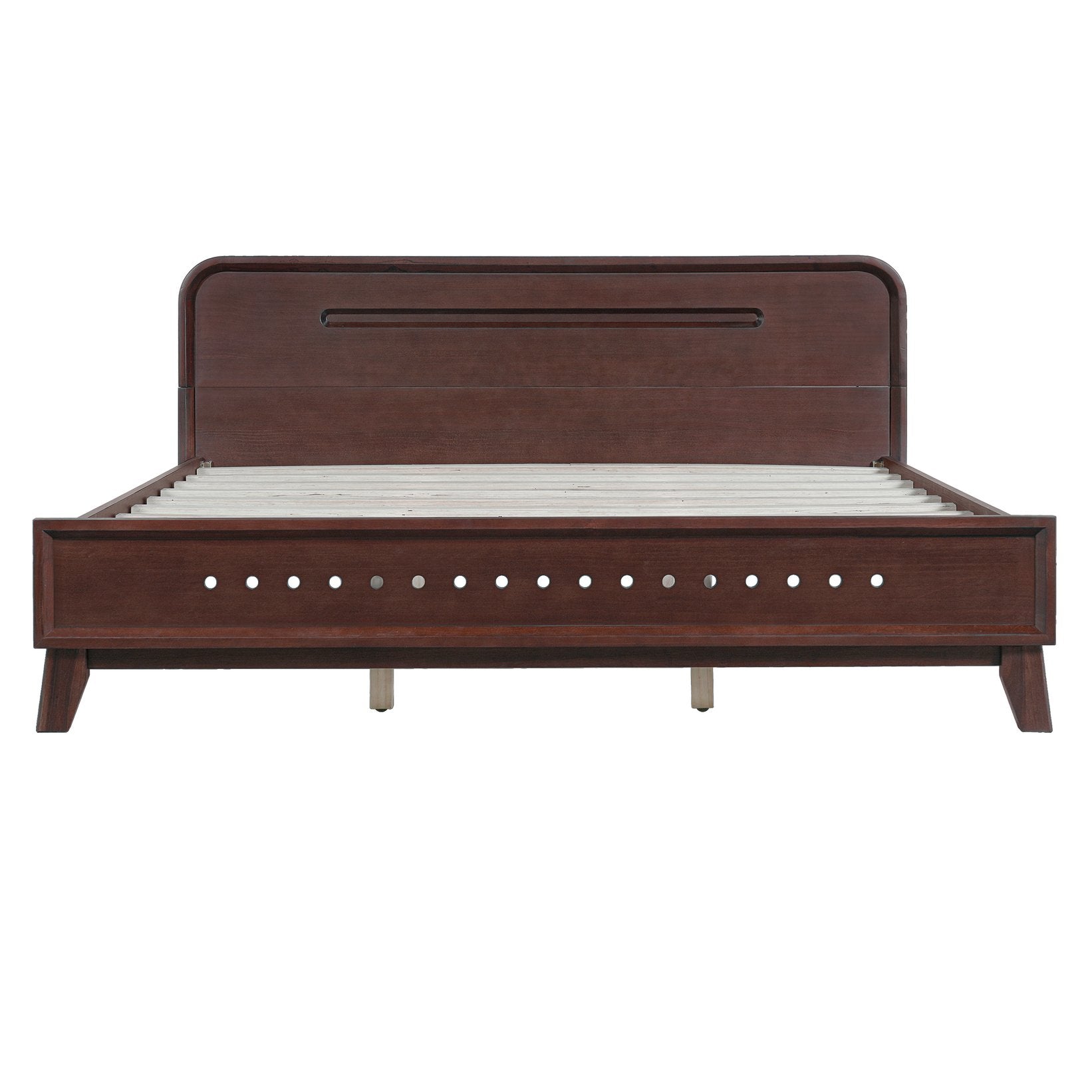 - TIMELESS DESIGN: Crafted with rich Dark Walnut tones, this queen-size bed artfully combines premium solid pine wood, MDF and Pollywood construction to achieve a harmonious blend of classic sophistication and modern resilience. The streamlined silhouette with refined detailing adds an air of understated luxury to any bedroom setting.
