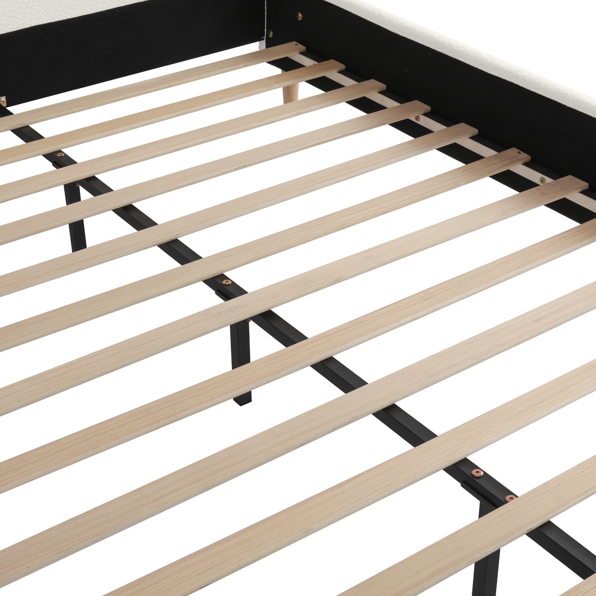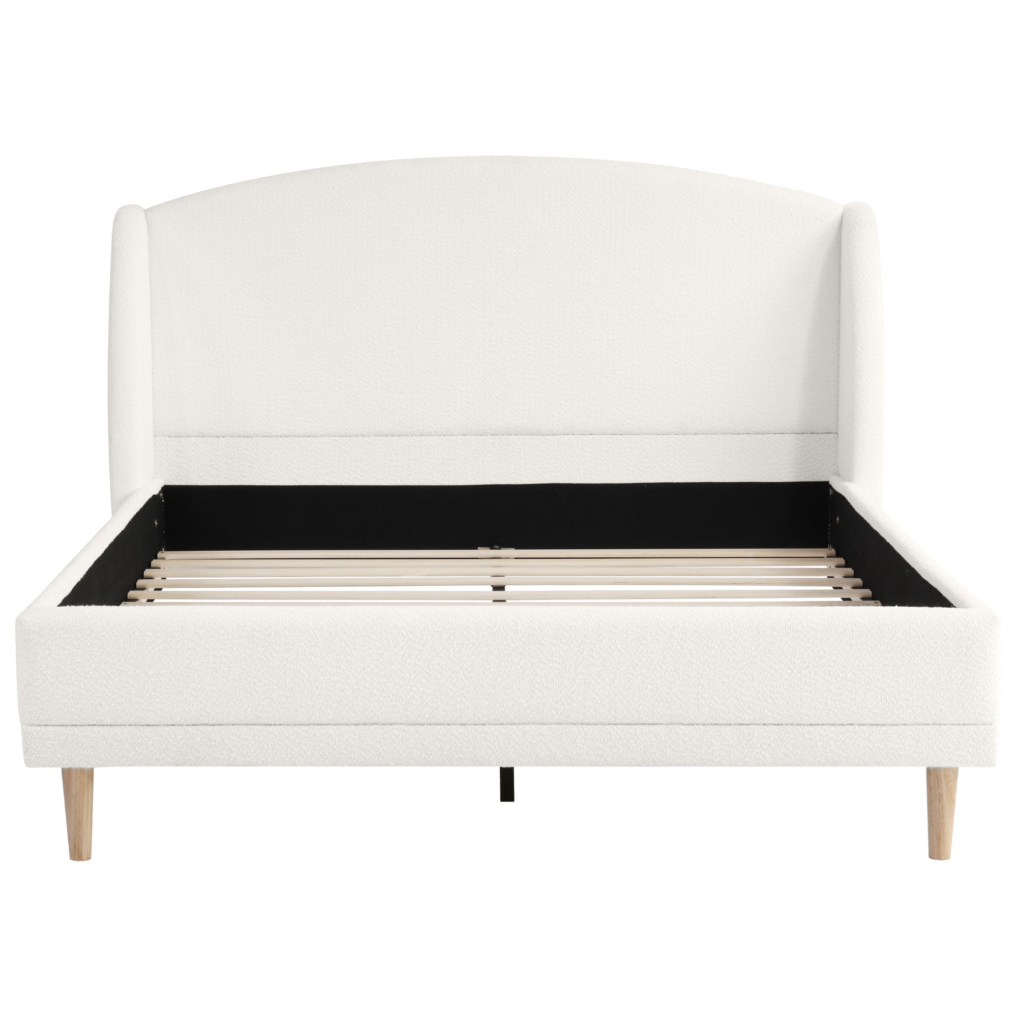 Transform your bedroom into a modern sanctuary with this queen-sized upholstered platform bed. Combining soft boucle upholstery, a sculpted wingback headboard, and a minimalist silhouette, it delivers both style and everyday comfort. Ideal for contemporary interiors, the bed provides a cozy reading backdrop and a sturdy, no–box-spring foundation for a clean, low-profile look.