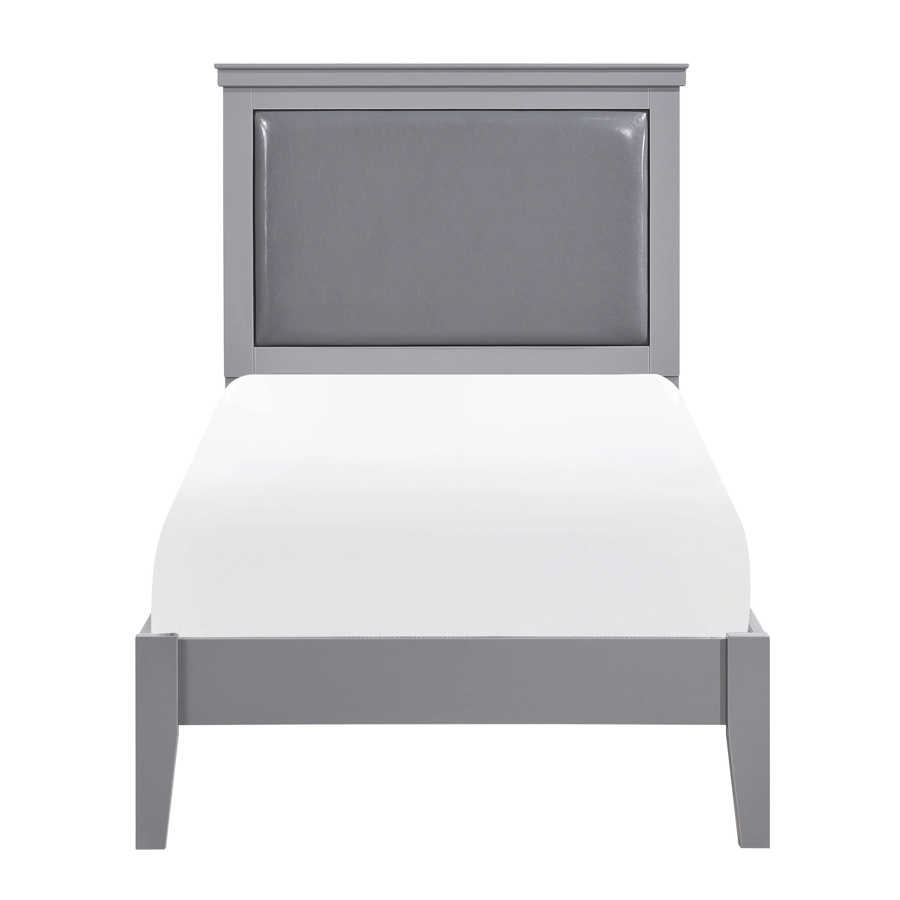 Give your bedroom a timeless foundation with this Classic Gray Twin Panel Bed, where traditional lines meet transitional style for a versatile, polished look. The neutral gray finish and faux leather upholstered headboard make it easy to pair with a wide range of décor, while the low-profile footboard and sturdy wooden construction deliver everyday comfort and lasting value.