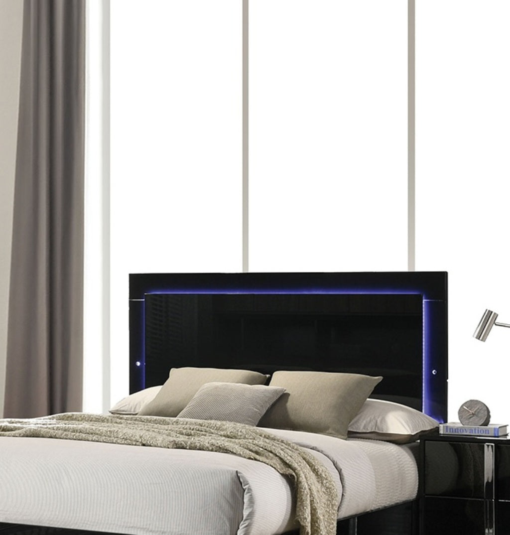 Elevate your bedroom with a sleek, contemporary queen bed that blends modern styling with practical features. The high-gloss piano black finish and integrated LED headboard create a striking focal point while delivering comfortable functionality for relaxing, reading, or unwinding at the end of the day.