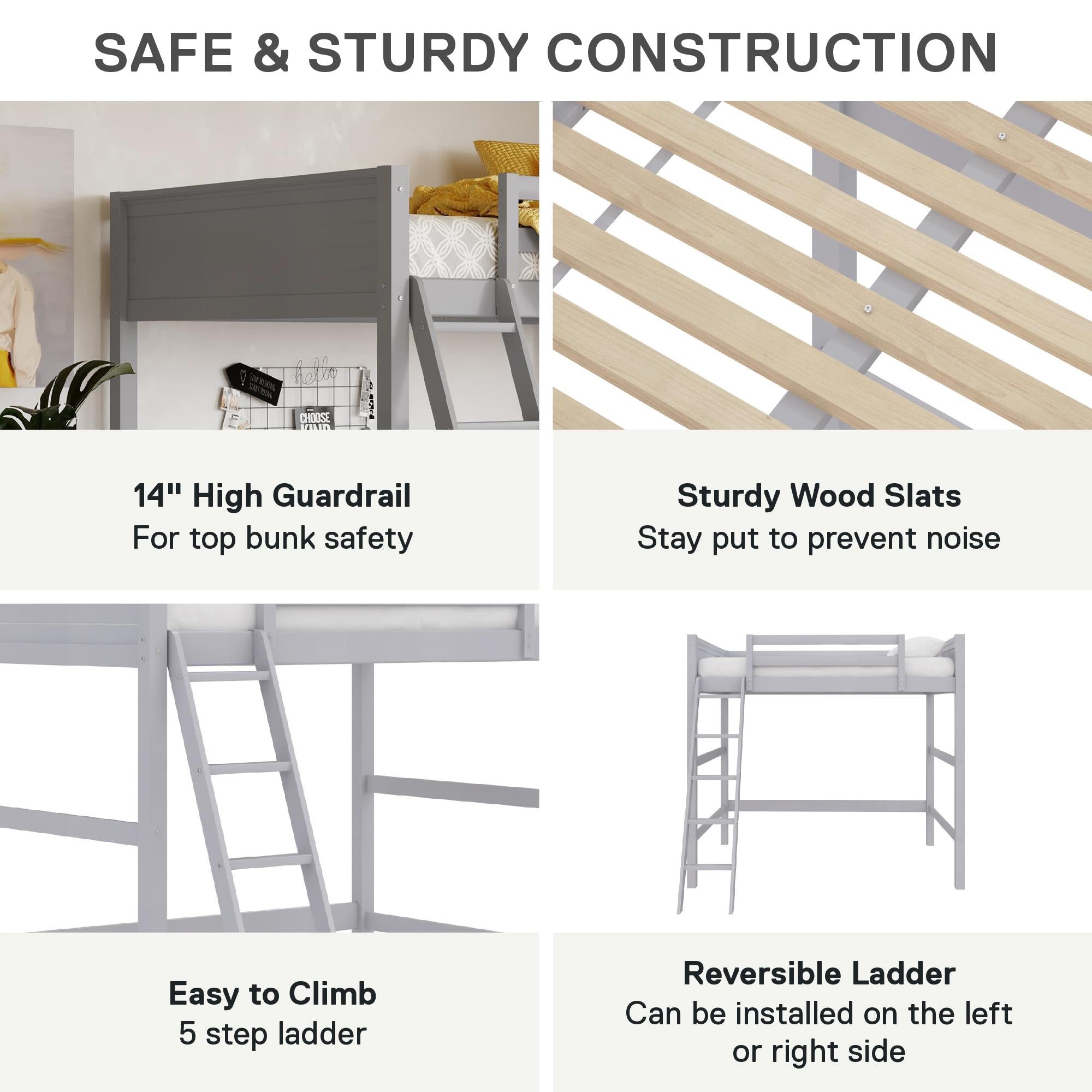 - Full-length guardrails on the top bunk help prevent falls and increase nighttime safety