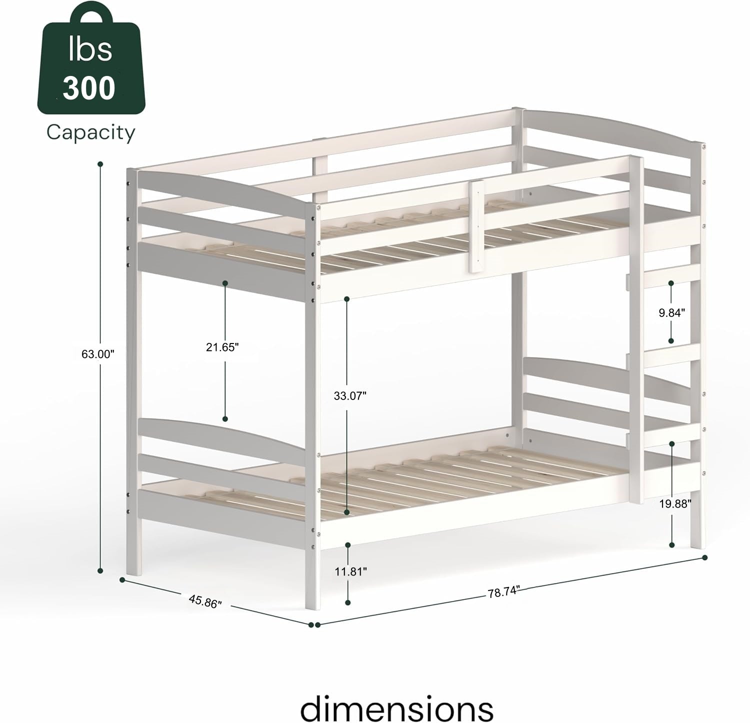Give your home a versatile, space-saving sleeping solution with this solid pine twin-over-twin bunk bed. Thoughtfully designed for teens and adults, it combines sturdy construction, practical storage clearance, and flexible configuration options so it adapts as your needs change—use it as a bunk, two separate twin beds, or a single bed plus daybed. The clean white finish and integrated ladder with high guardrails provide safety and a timeless look that fits most bedrooms.