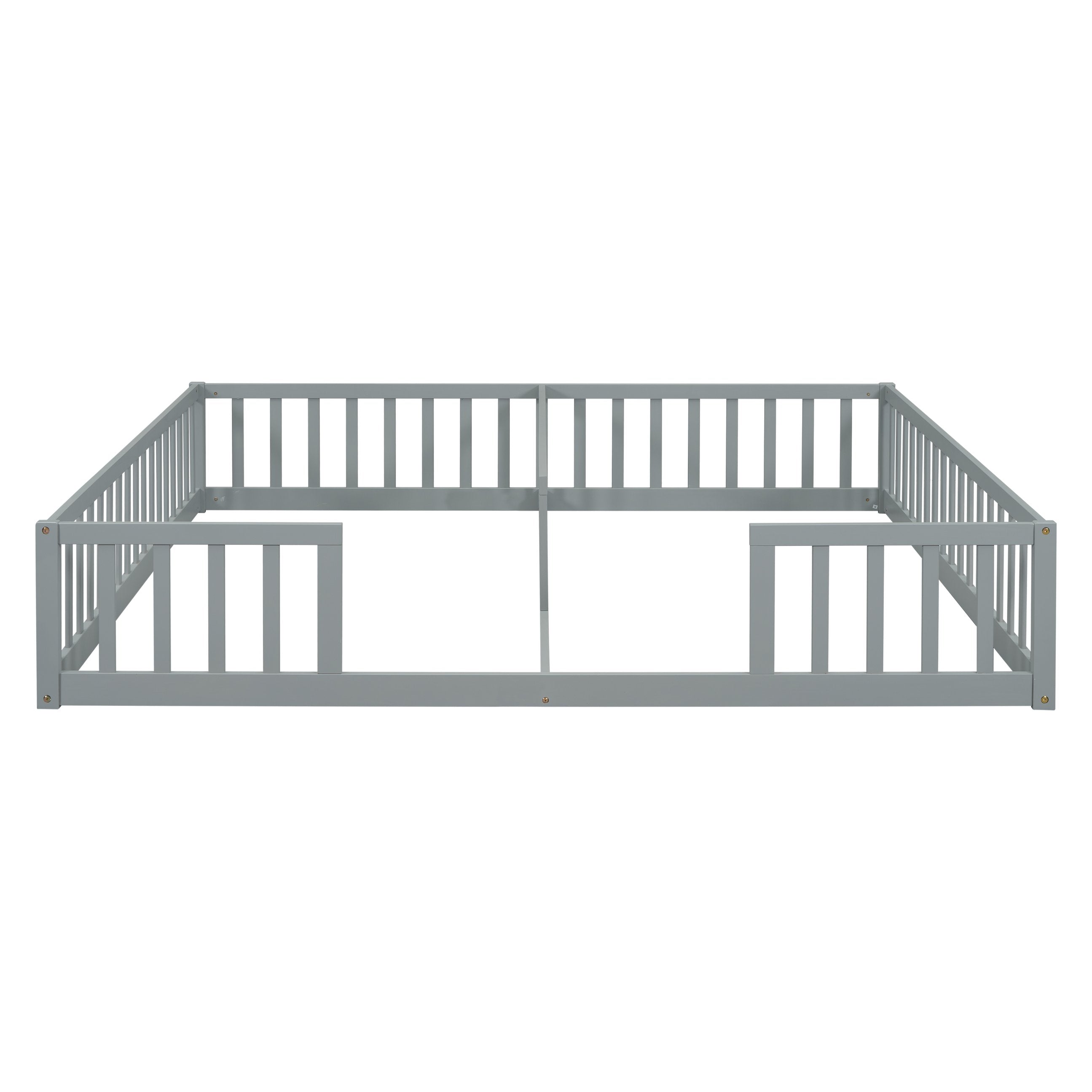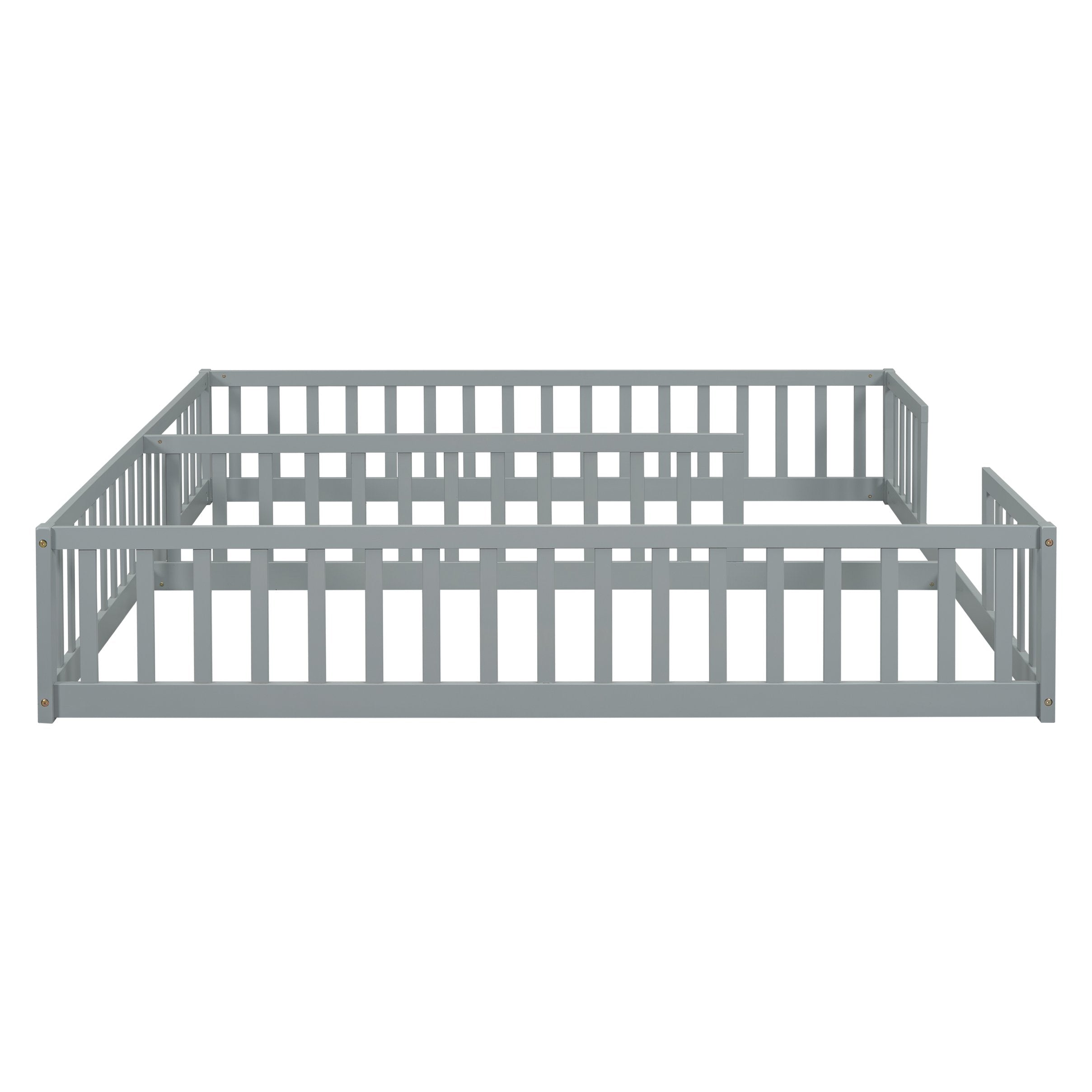 A compact, family-friendly double twin floor bed that combines safety, simplicity, and contemporary grey styling to create a comfortable shared sleeping solution for two children or adults. Built from pine and plywood with protective fence-style guardrails, this low-profile design reduces fall risk, fits close to the floor for easy access, and installs quickly with the included manual and hardware—ideal for shared bedrooms, playrooms, or guest spaces.