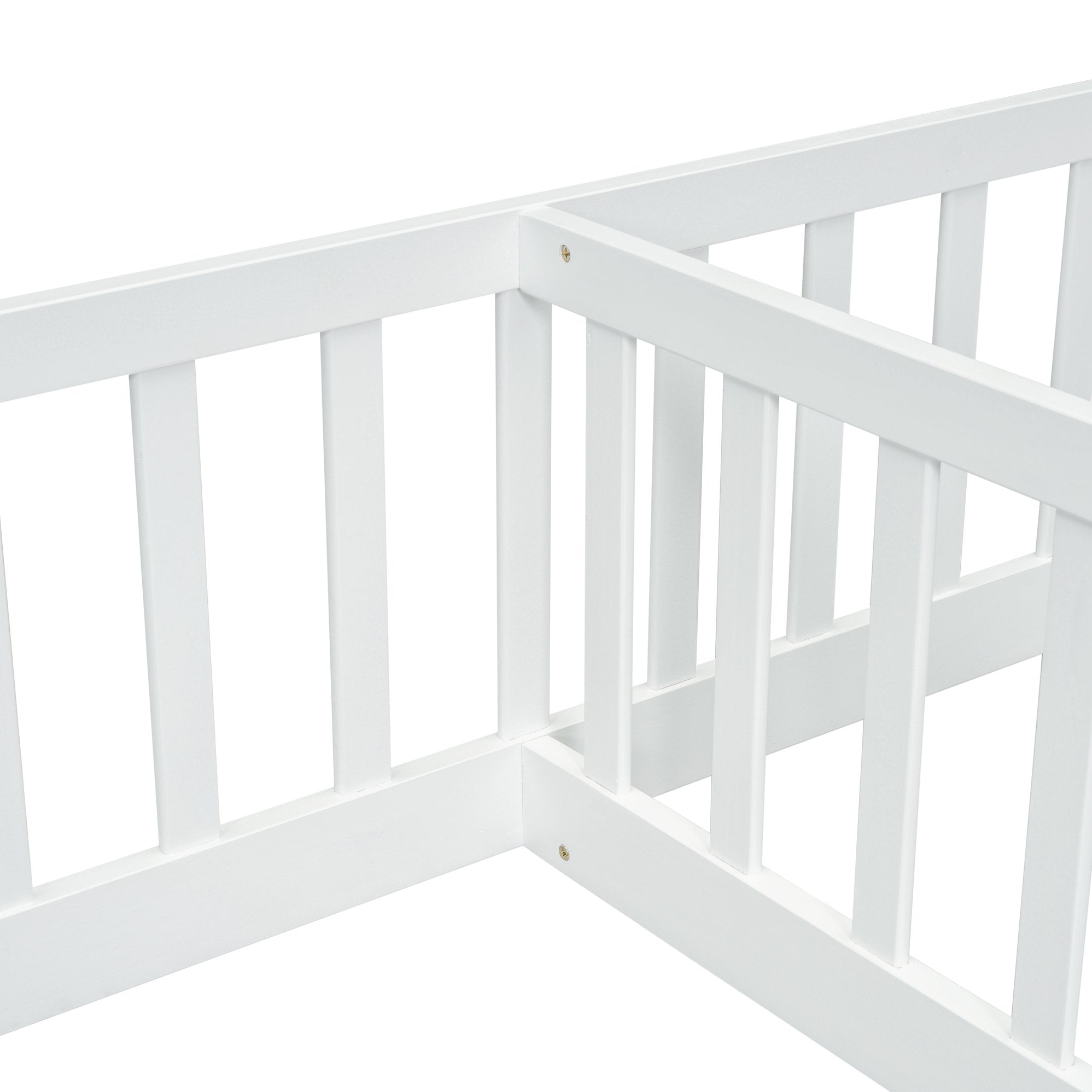 Enjoy cozy, space-saving sleeping for two with this family-friendly double twin floor bed. Built low to the ground for ease of use and enhanced safety, the bed features sturdy fence-style guardrails on both sides to help prevent falls while preserving open access. Its simple, clean white finish and durable pine/plywood construction make it a versatile addition to kids’ rooms, guest rooms, or shared spaces. Easy to assemble with included manual and hardware, it accommodates two twin mattresses and supports everyday use with solid weight capacity.