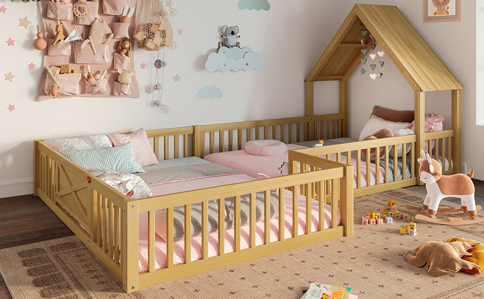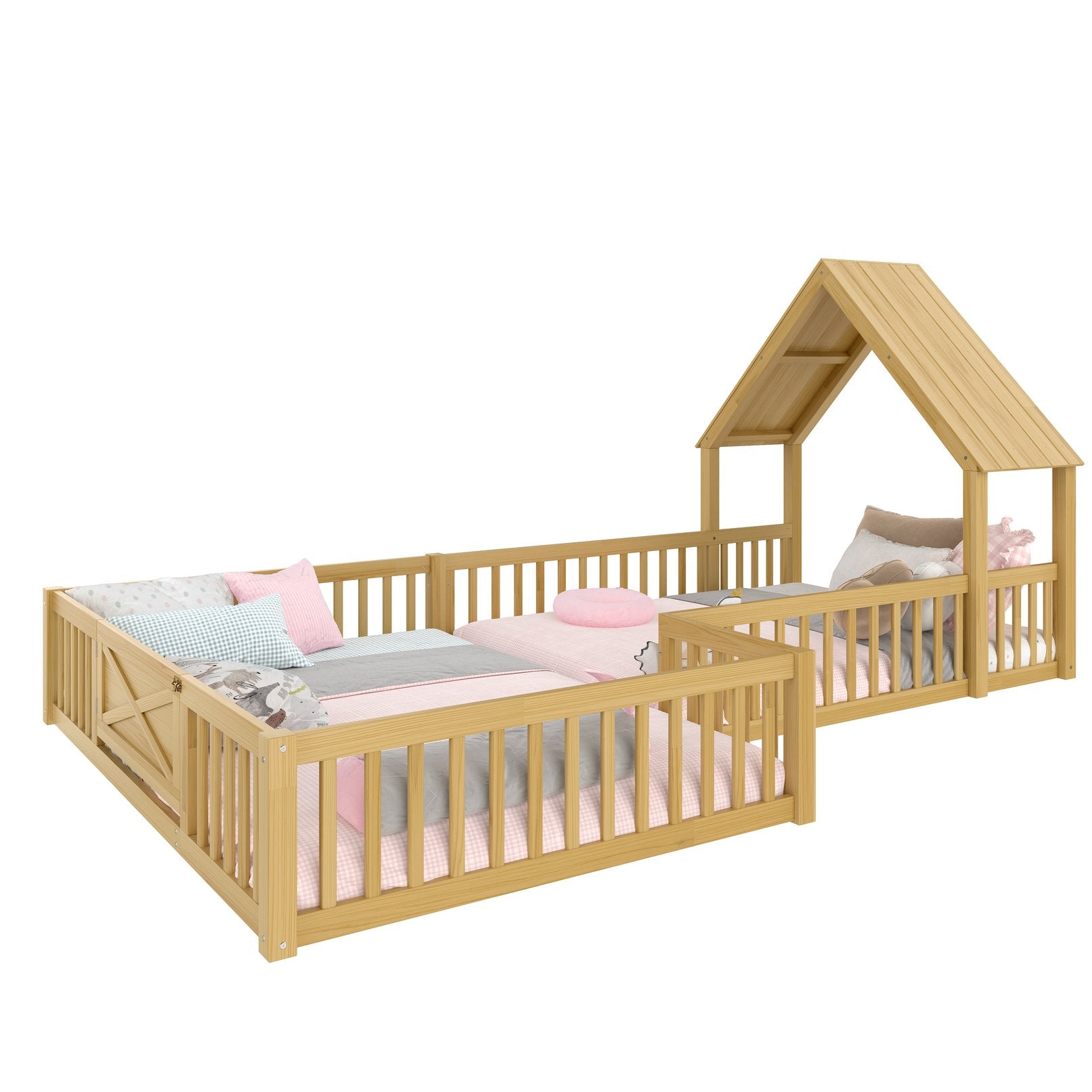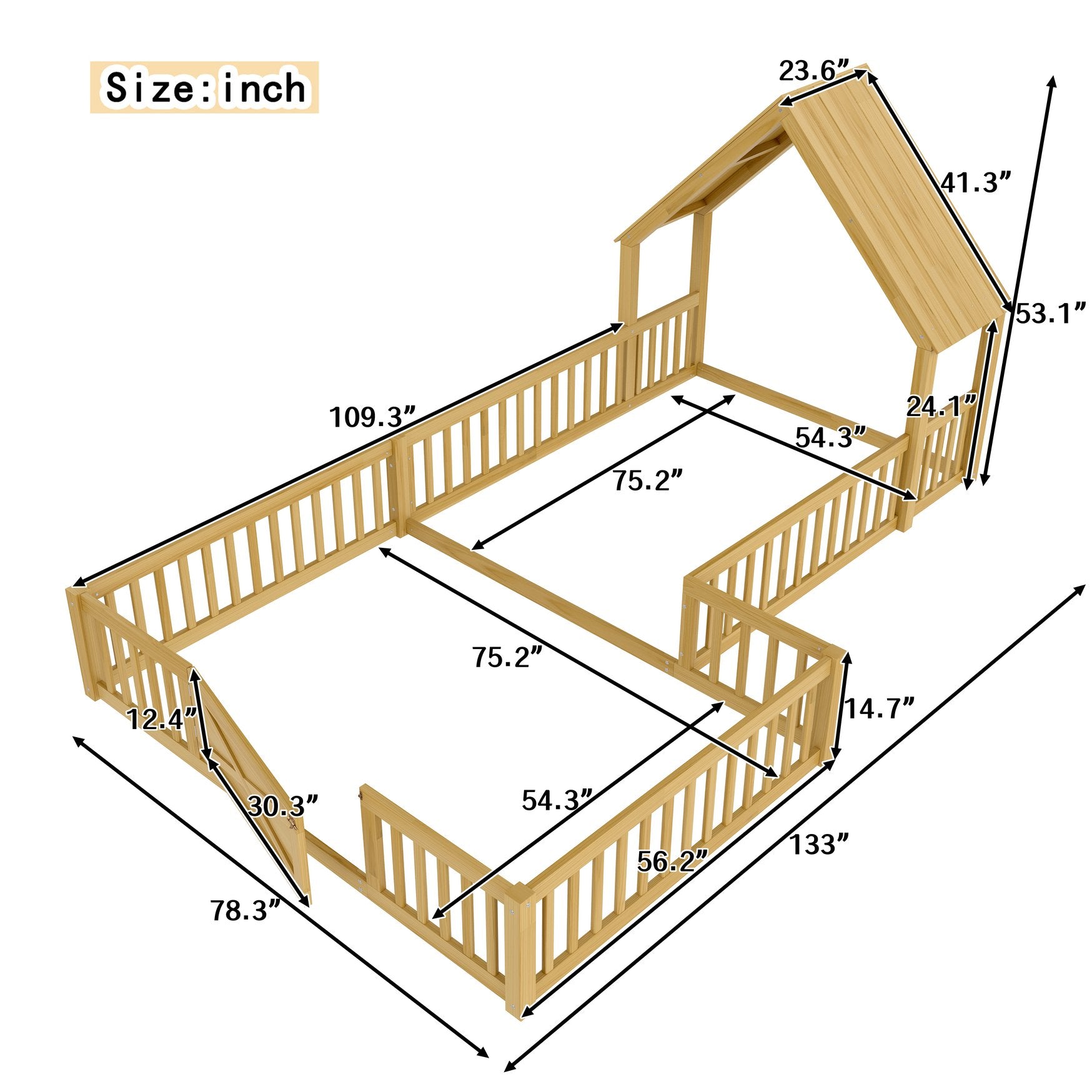 Bring imagination and safety together with this versatile Full Size House Floor Bed. Its charming house-shaped frame and low-to-ground design create a cozy, inviting sleep space that doubles as a play area or reading nook. Built from solid wood with full-length guardrails and a multi-function layout, this bed is ideal for siblings, sleepovers, or creating a private play corner while keeping children secure and independent.