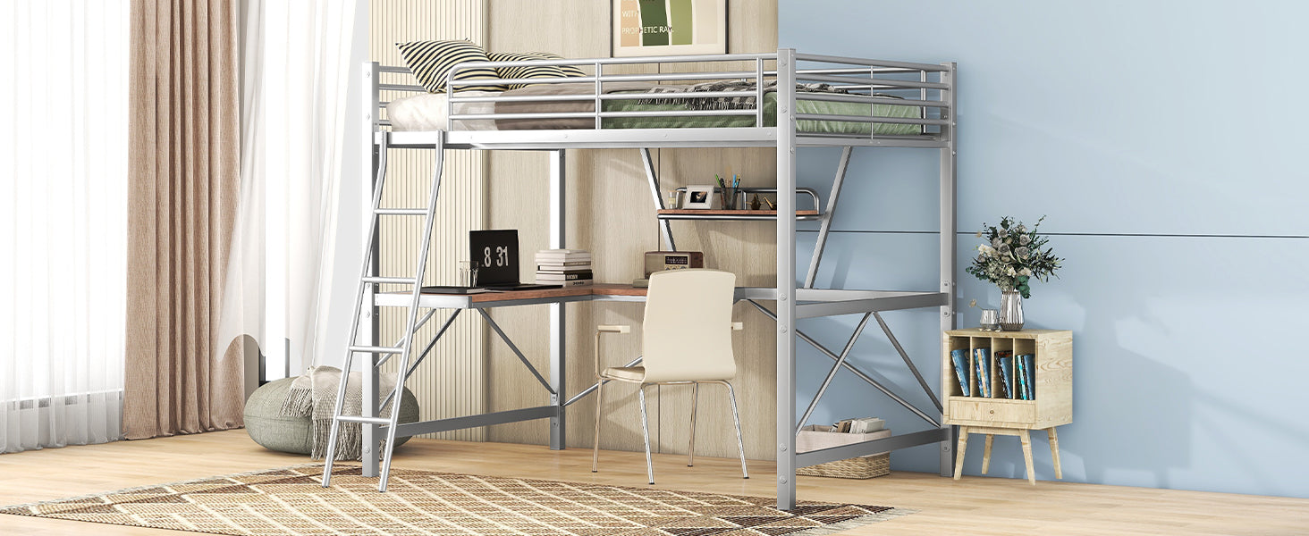 - [Built-in Desk and Shelf] This loft bed making full use of space, coming with a desk and shelf under bed, the bed creates a great personal workstation.