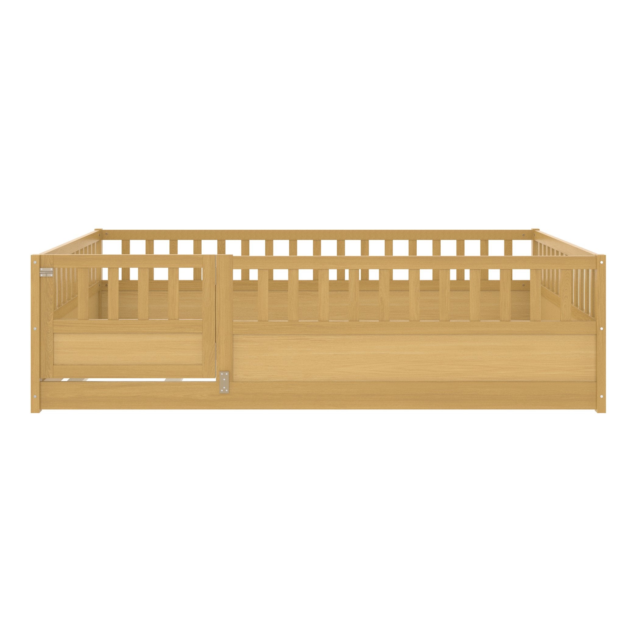 Give your child a cozy, secure sleeping space with this full-size Montessori-style floor bed. Crafted from natural pine and plywood with an integral high-security barrier and easy-access door, it blends safety, durability, and a warm wooden aesthetic—ideal for encouraging independence while keeping bedtime safe and comfortable.
