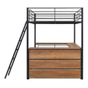 Transform your bedroom into a functional, space-saving haven with this modern full-size metal loft bed. Built for durability and designed for versatility, it elevates your sleeping area to free up room for a built-in L-shaped desk, open shelving, and organized storage — ideal for studying, working, or displaying essentials. The clean silhouette and matte finish blend seamlessly with contemporary décor while safety-focused features like a sturdy ladder and full-length guardrails provide peace of mind.