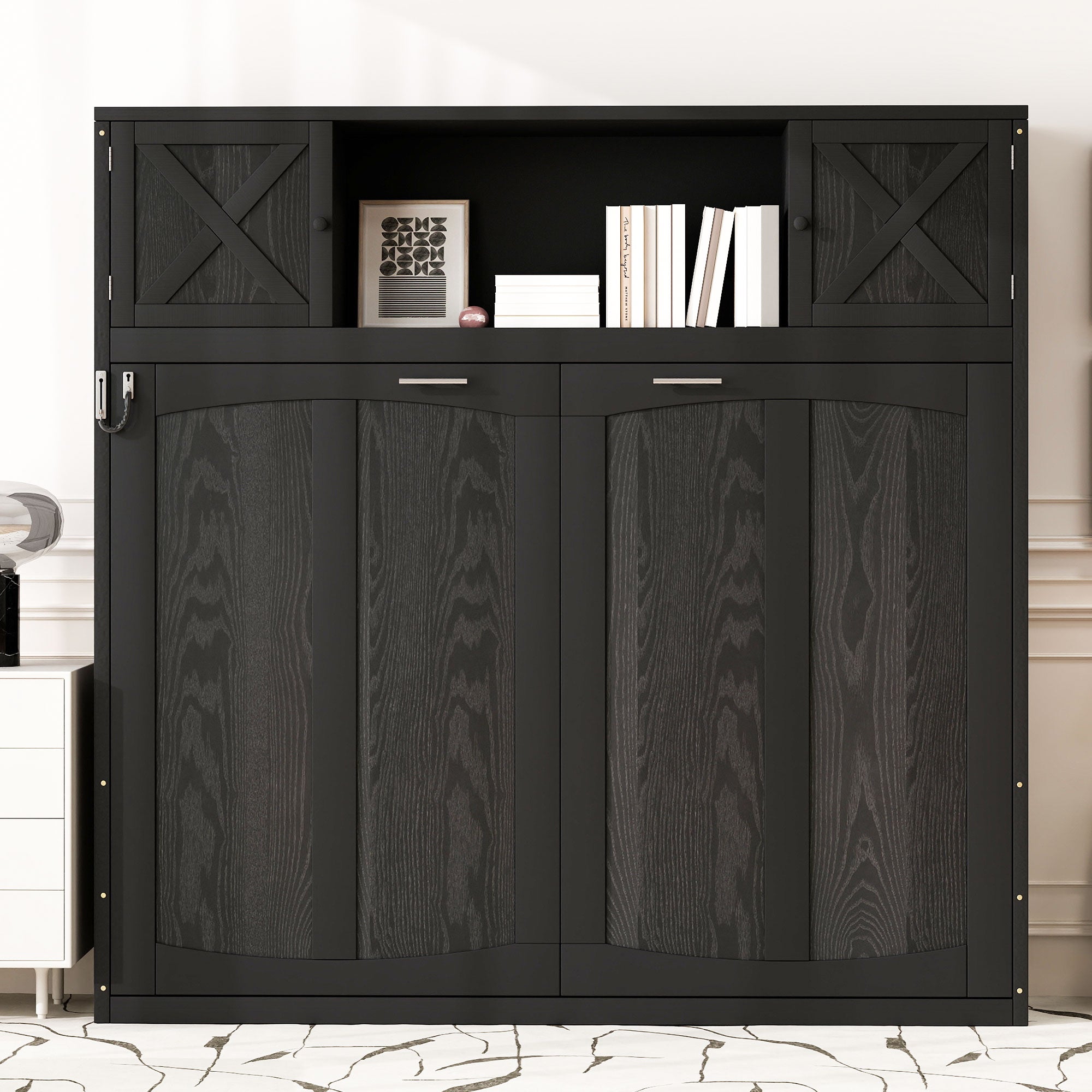 - [Rustic Casual Style] Featuring the black finish and X-shaped decoration, the murphy bed adds a rustic, country feel to your room.