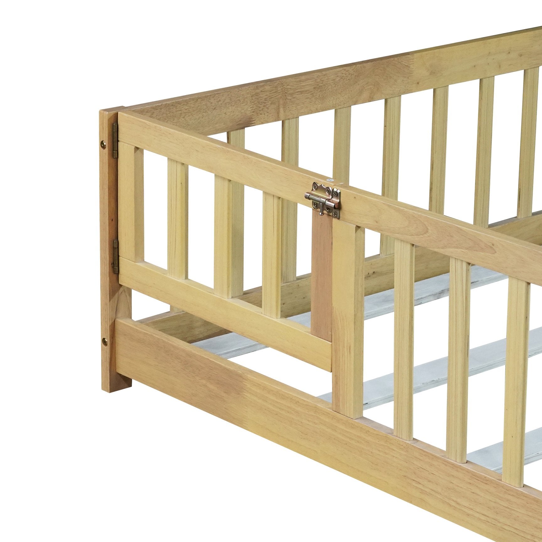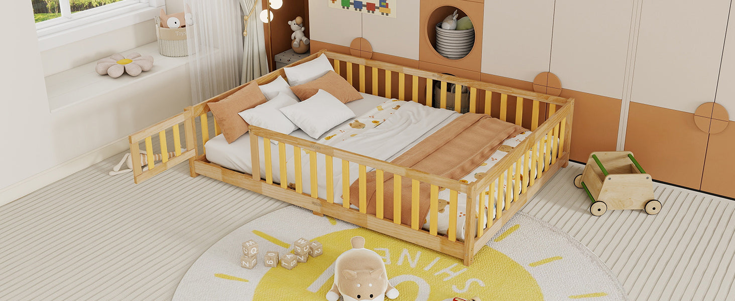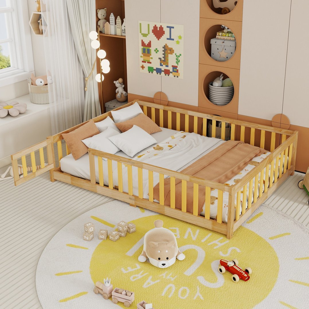Give your bedroom a warm, safe, and minimalist upgrade with this natural rubber wood full size floor bed. Designed for low-profile comfort and everyday durability, it features protective guardrails and a convenient fence-and-door style that’s perfect for homes seeking a cozy, grounded sleeping solution. Eco-friendly finishing and solid construction make this bed a practical choice for long-term use and easy assembly.