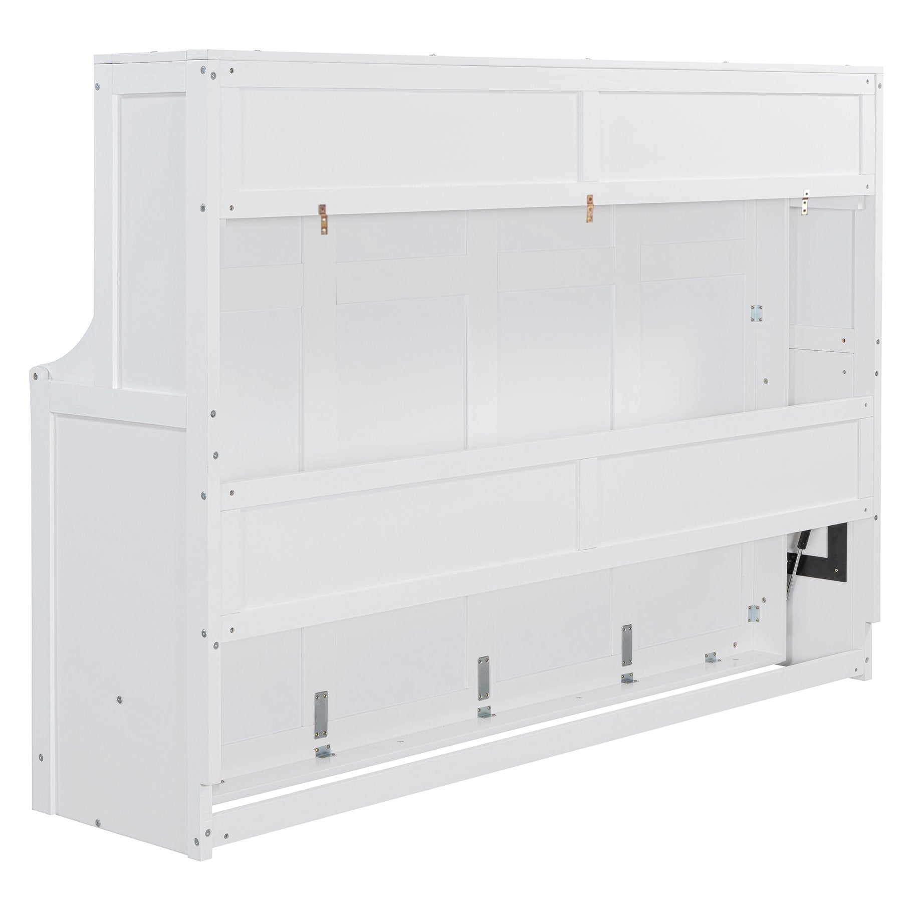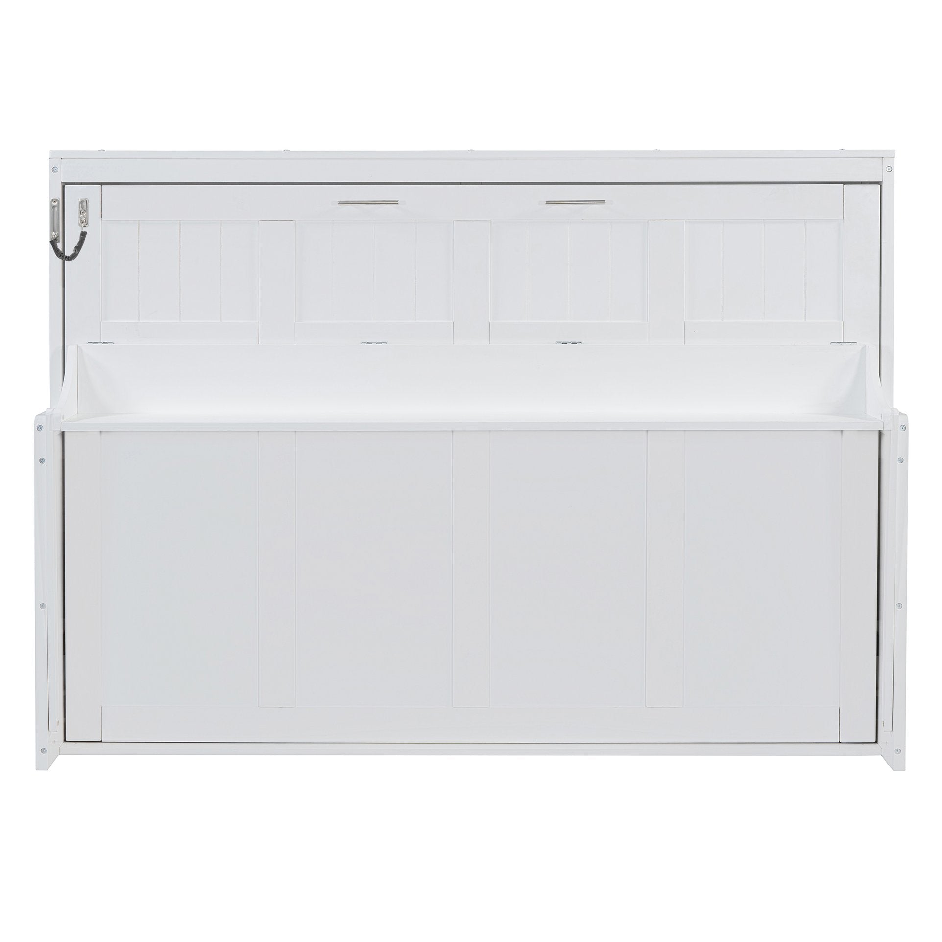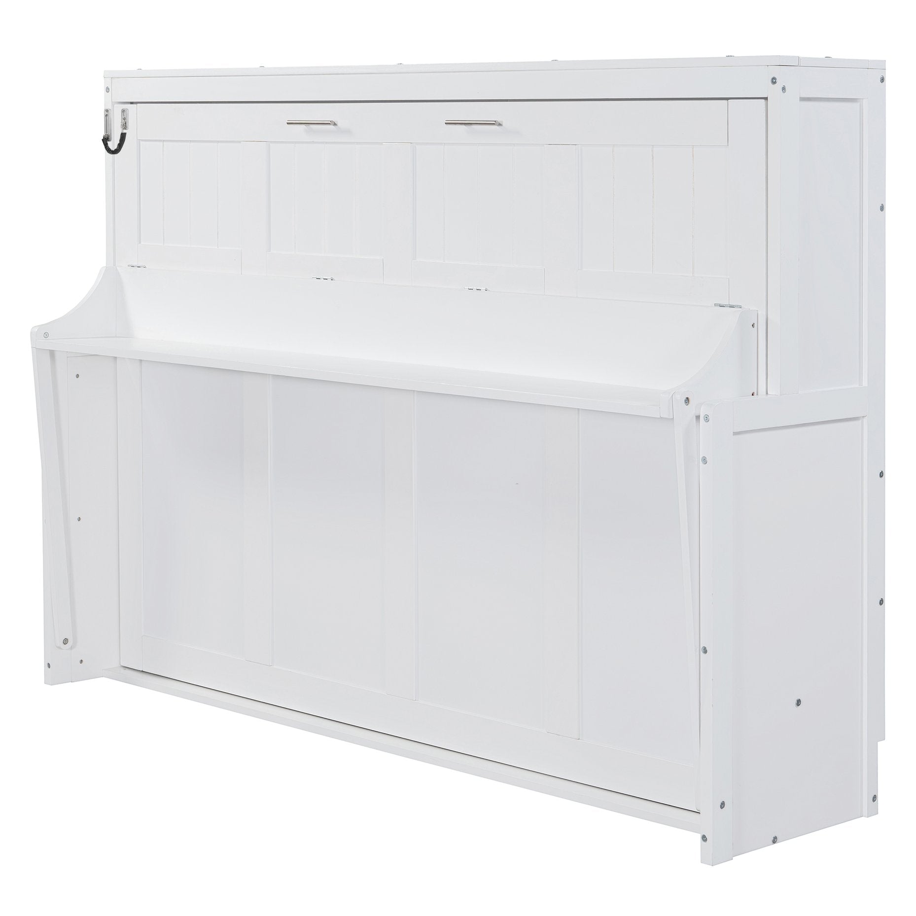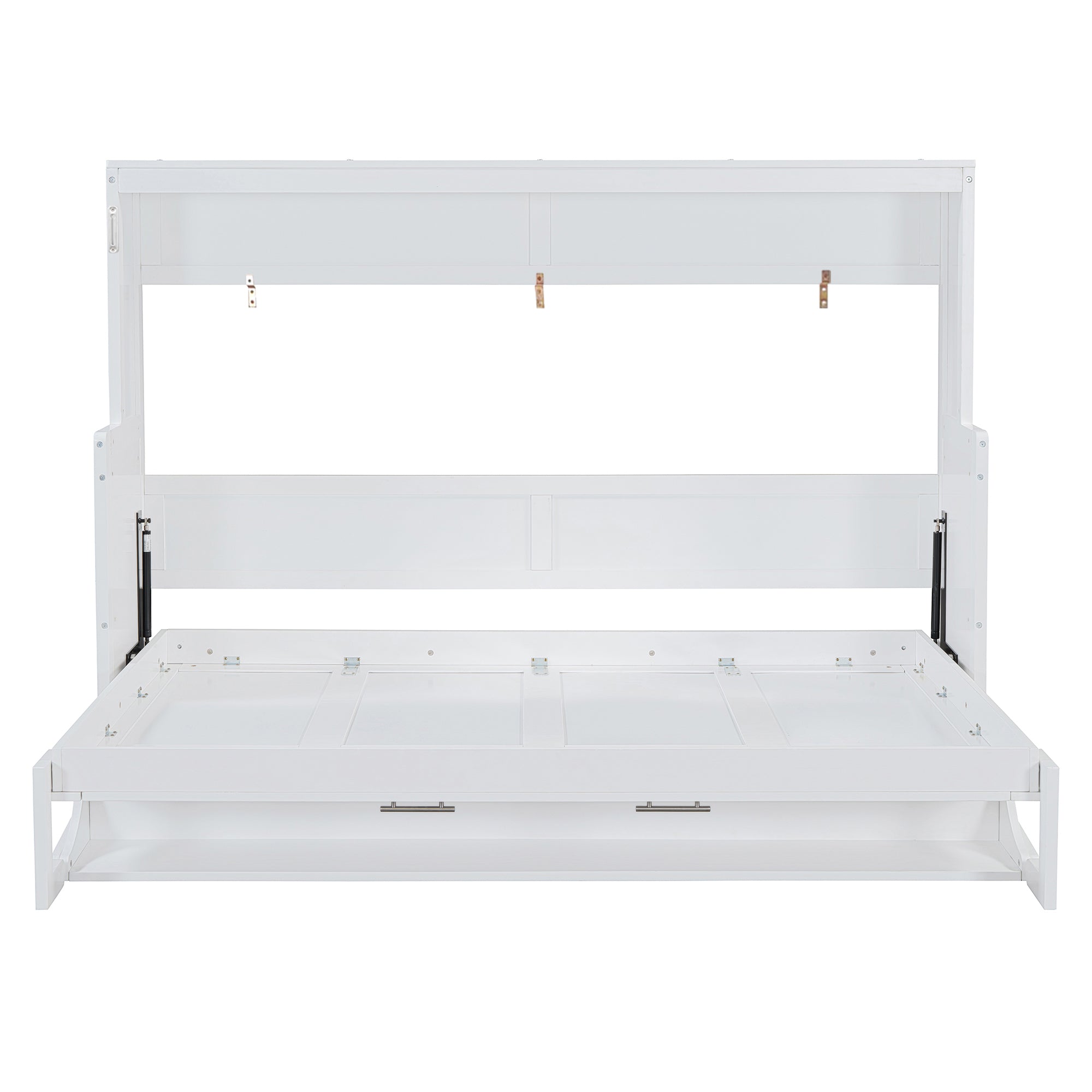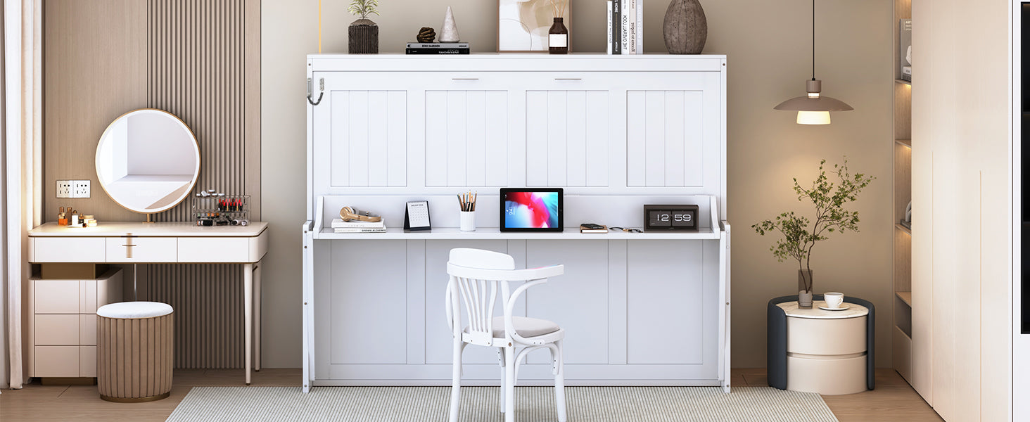 Transform your guest room, home office, or studio apartment with this versatile Full/Queen Murphy bed featuring a built-in desk and smooth hydraulic lift. Designed to maximize floor space without sacrificing style or strength, the bed stores a mattress inside the cabinet and converts instantly between workspace and sleeping surface. Finished in a neutral washed white (also available in washed gray), it complements modern and classic décor alike and supports heavy daily use.