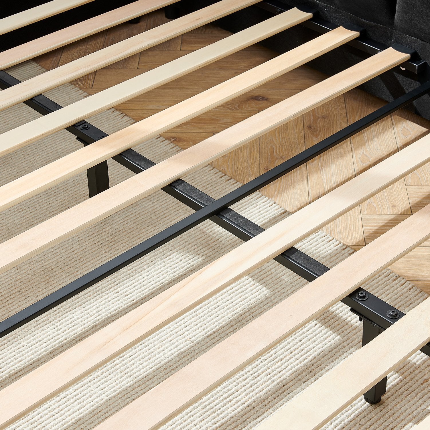 - Support: Slatted base provides mattress support—no box spring required