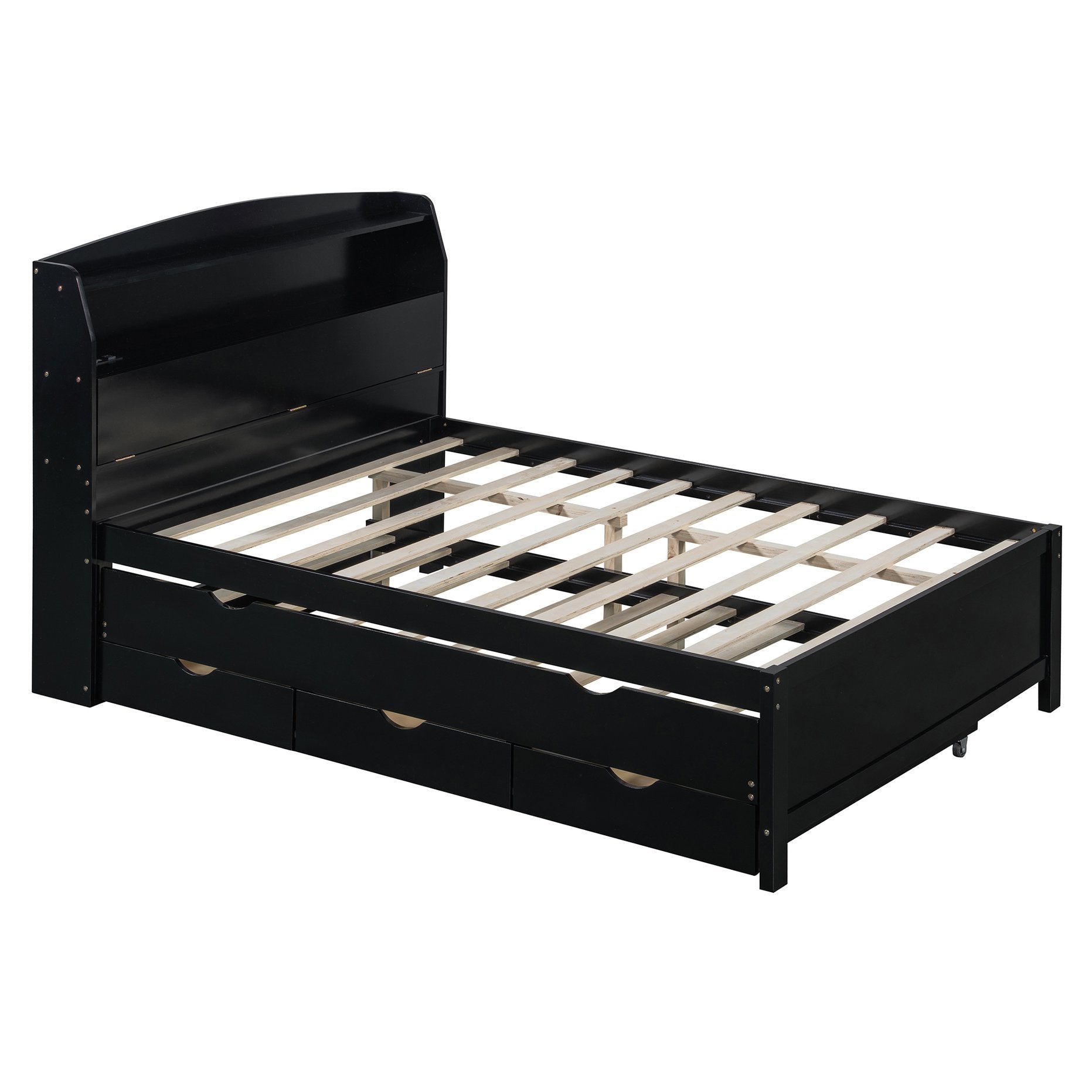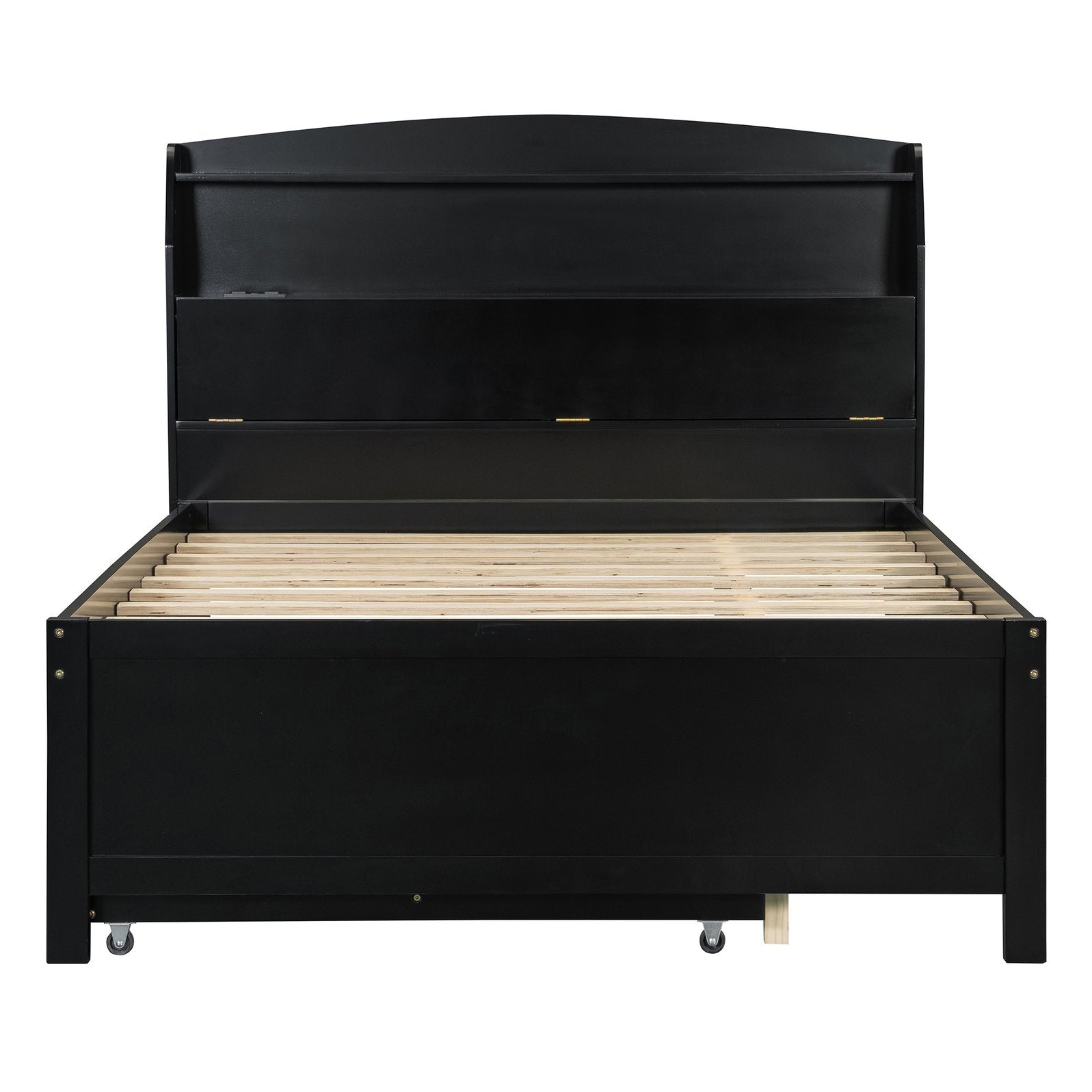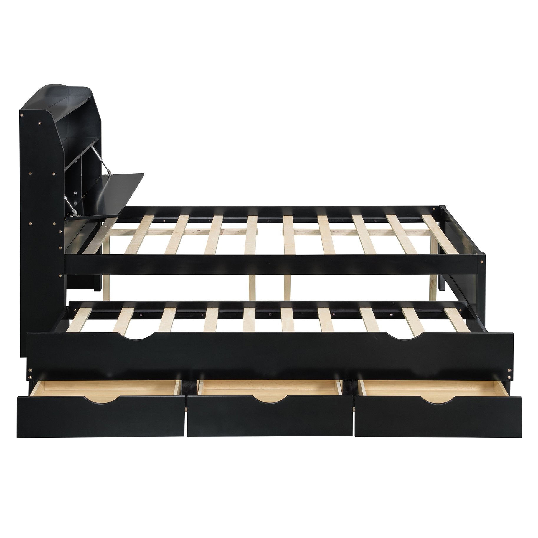 Bring style, smart storage, and modern convenience into your bedroom with this full-size wooden platform bed. Designed for everyday living, it combines a flip-up headboard storage compartment, built-in LED nightlight and USB charging, under-bed drawers, and a trundle option to maximize space without sacrificing comfort or aesthetics.