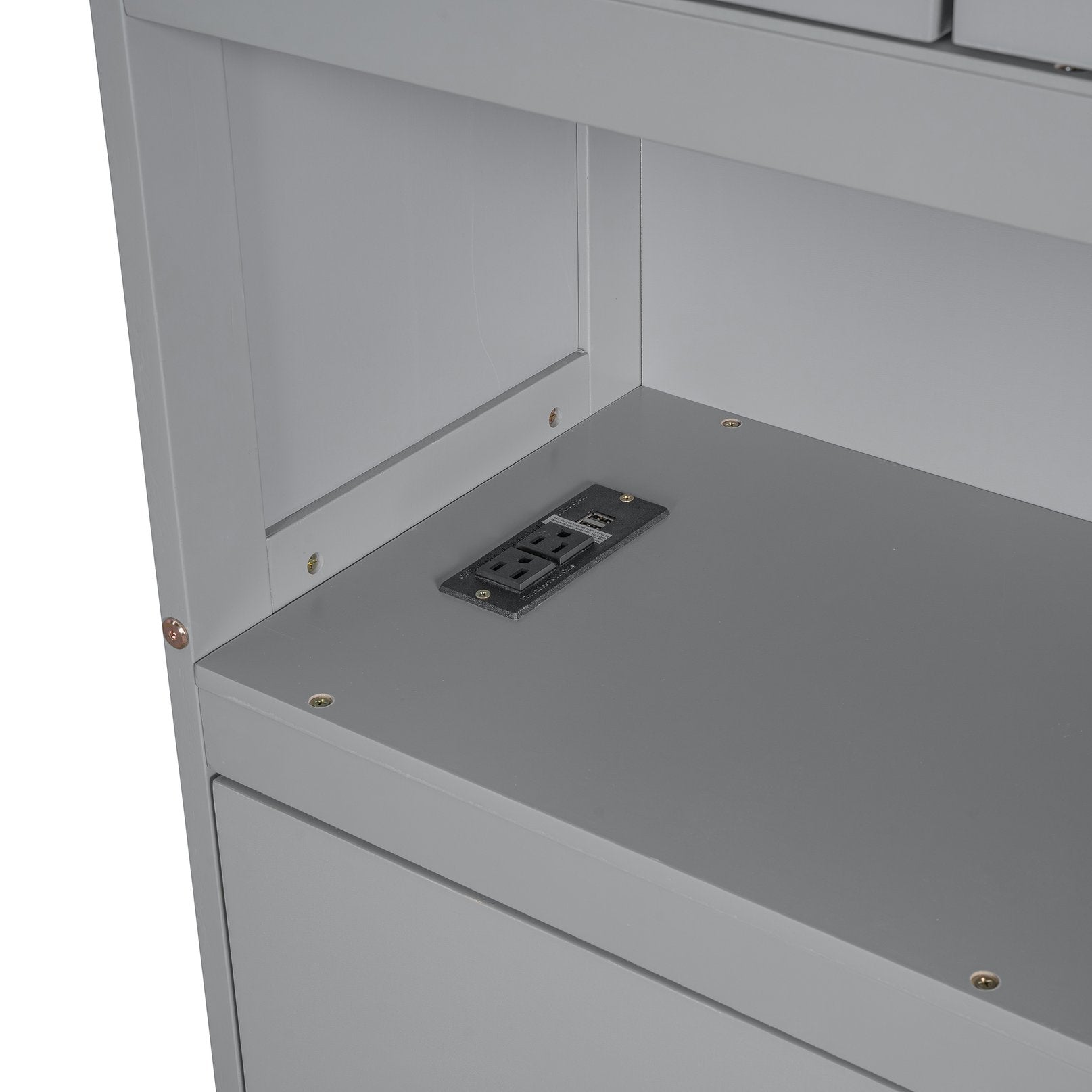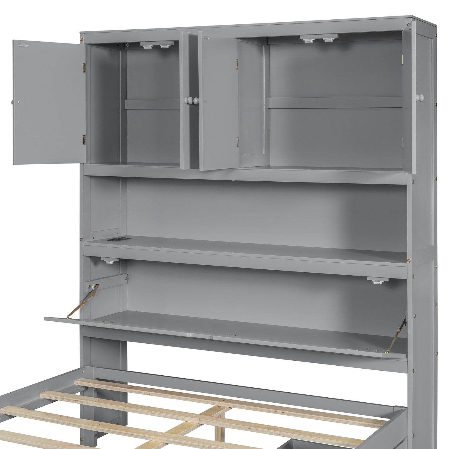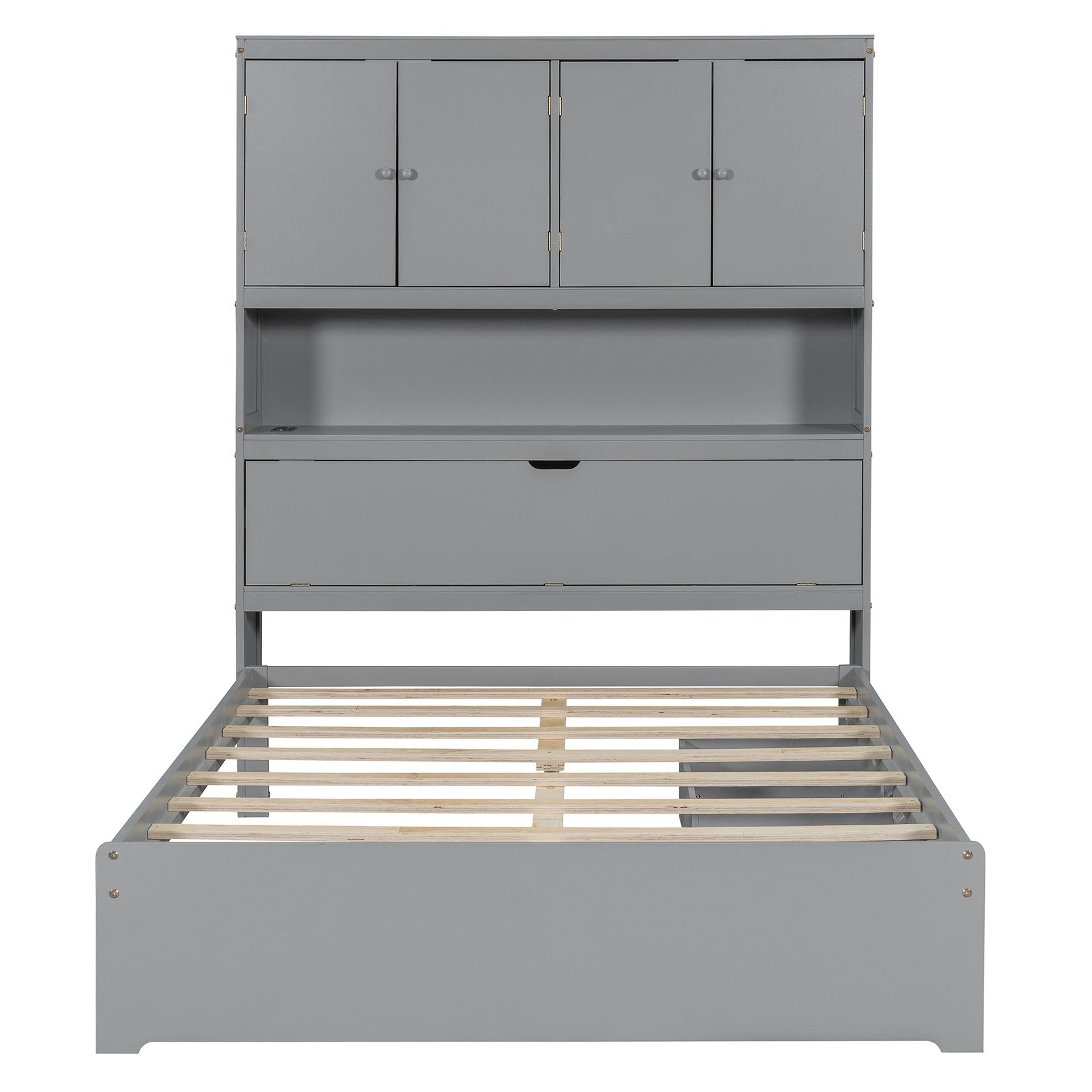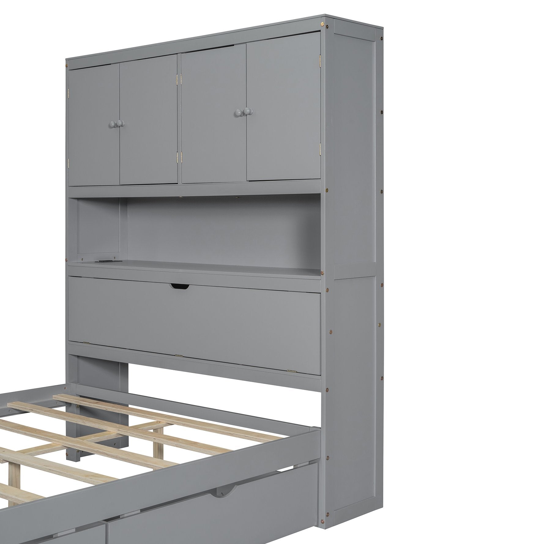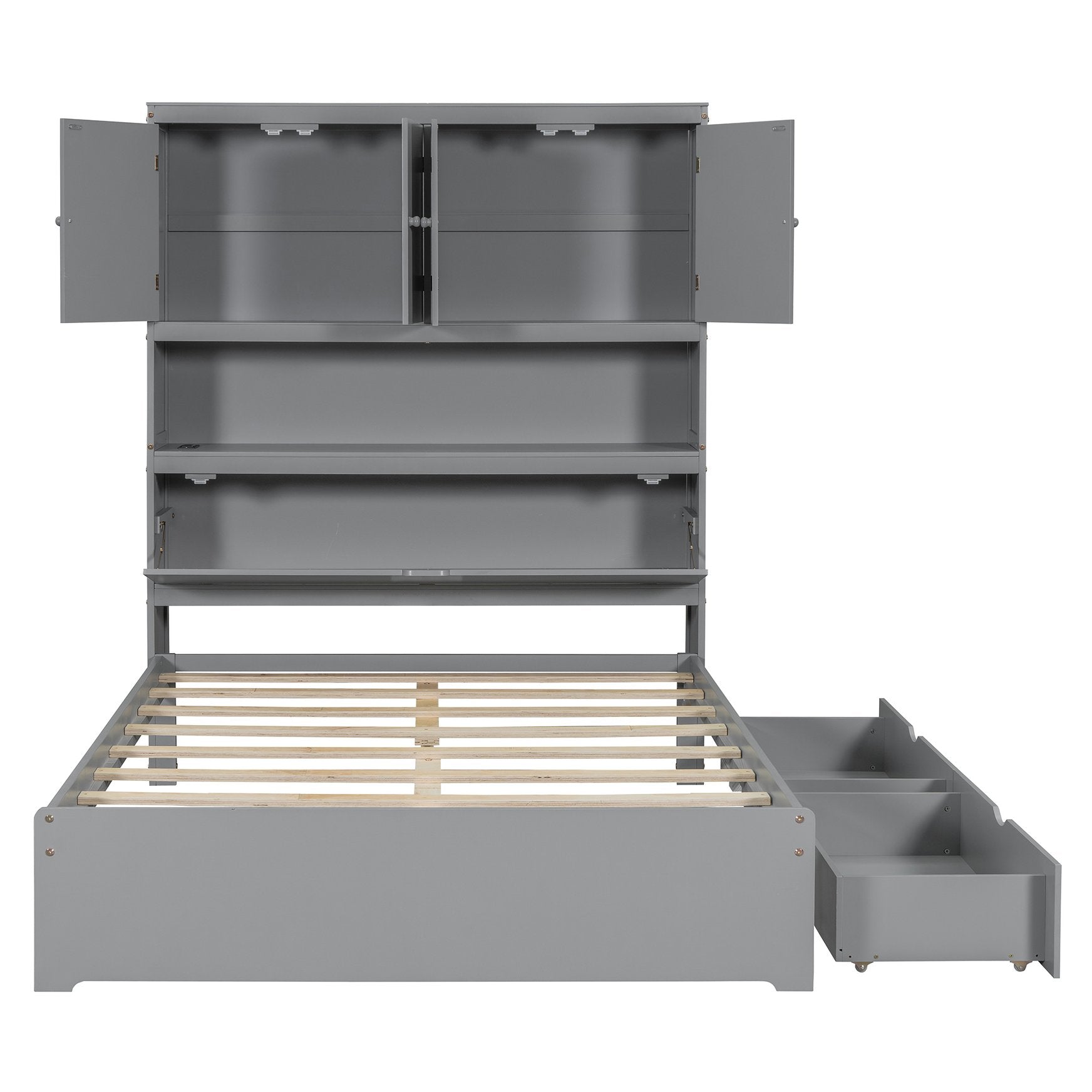 Bring modern functionality and smart storage to your bedroom with this full-size wooden platform bed. Thoughtfully designed for everyday convenience, it blends a clean gray finish with practical features—LED lighting, USB charging, a flip-up headboard compartment, and roomy under-bed drawers—so you get a stylish centerpiece that keeps your space organized and comfortable.