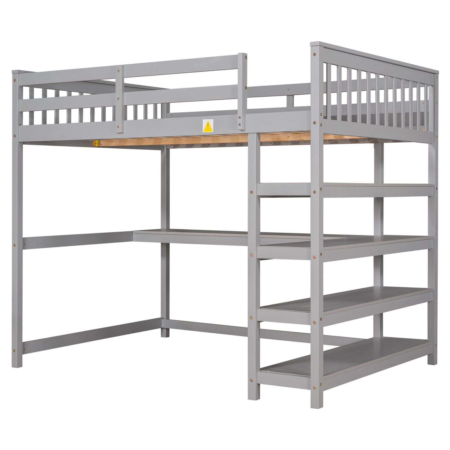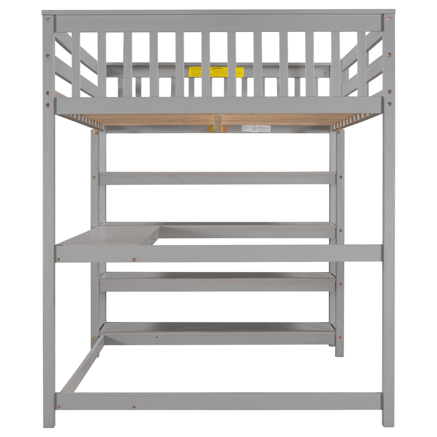 Make the most of your space with this versatile full-size loft bed that combines a comfortable sleeping area with a built-in workstation and smart storage. Constructed from solid pine and MDF with a neutral gray finish, it’s designed for durability and style—ideal for bedrooms, dorms, or multi-use spaces where maximizing floor area is a priority.