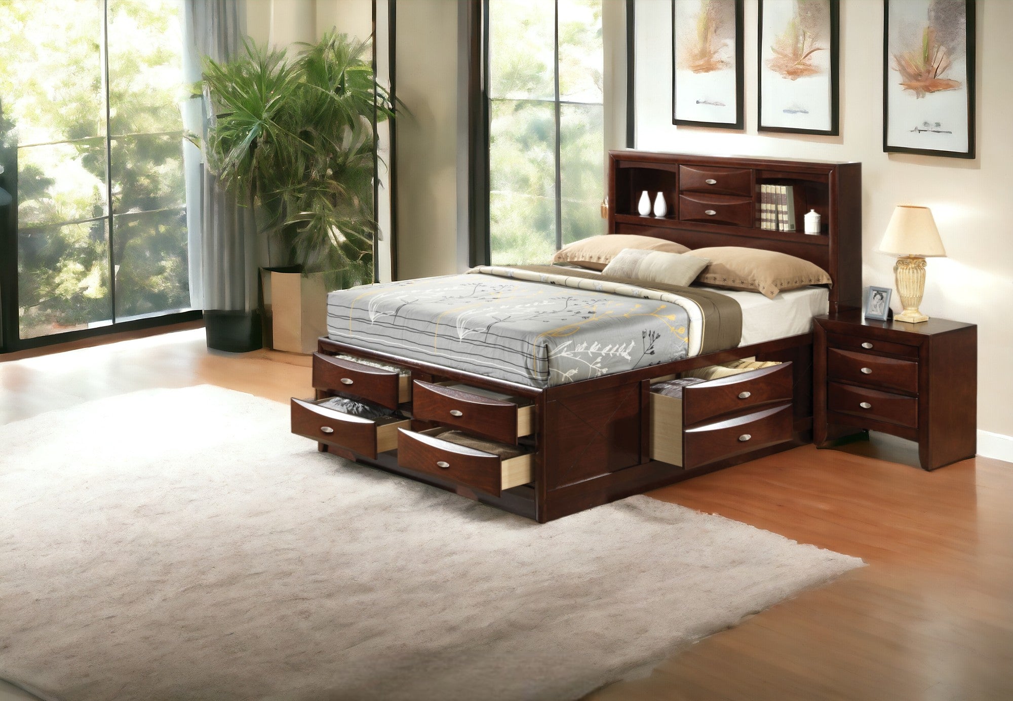 - Box Spring Not Required, Storage Bed: Bookcase HB, Storage: 8 Drawers (HB, FB & Both Rails)