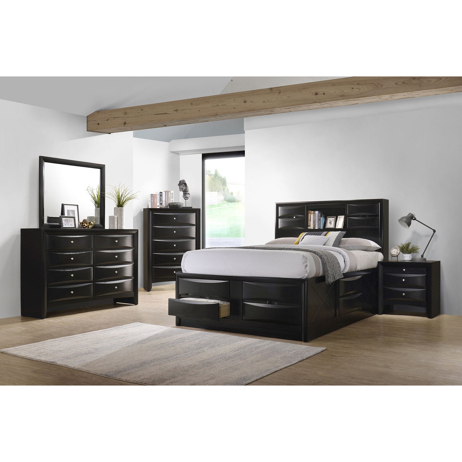 - Key feature: Queen storage bed with coordinated bookcase headboard and underbed storage