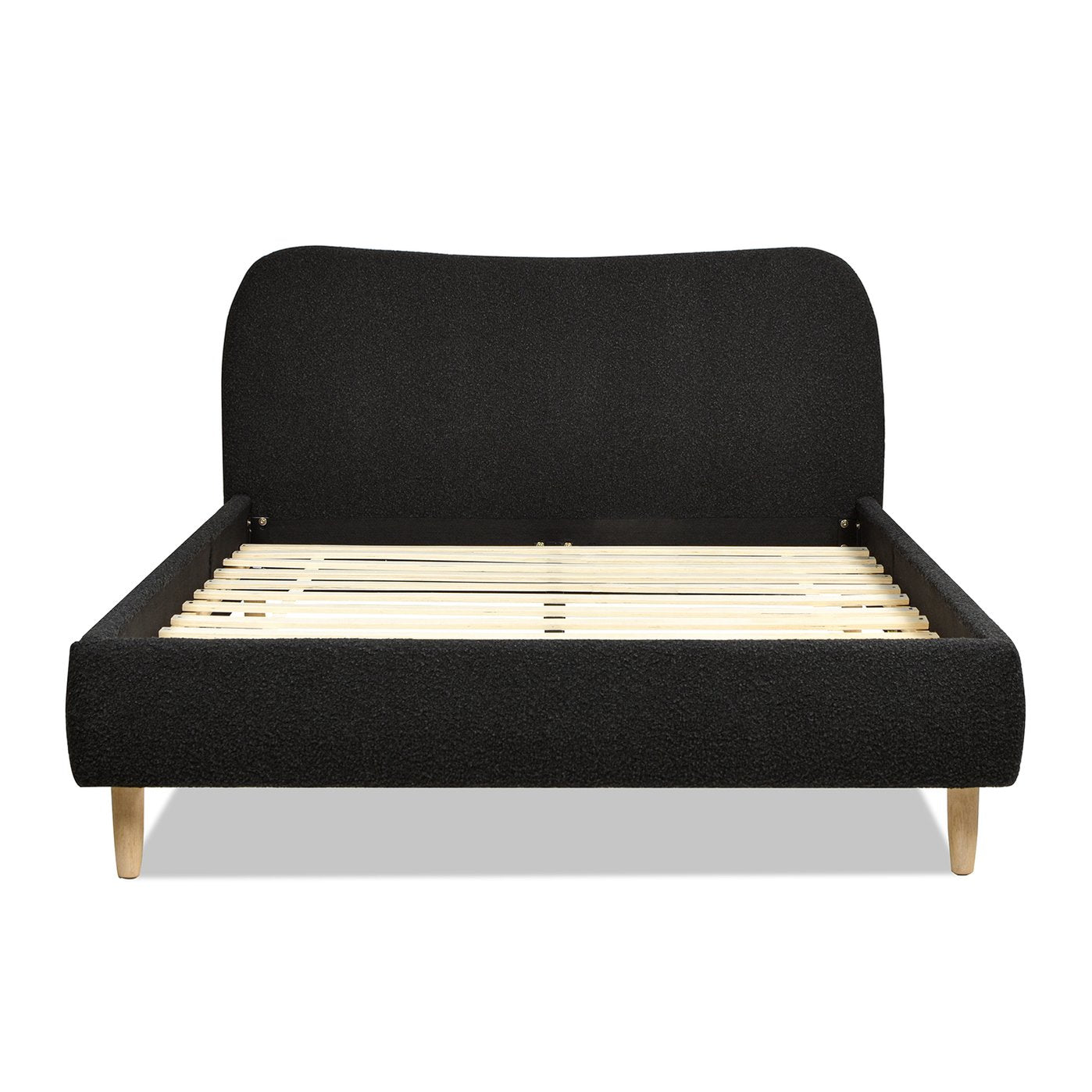 Give your bedroom a modern, cozy upgrade with this elegantly curved platform bed. Upholstered in a luxe ebony black boucle, it blends contemporary texture with a streamlined silhouette to create a focal point that’s both comfortable and sophisticated. Designed for easy setup and everyday comfort, the bed requires no box spring and offers a plush, fully upholstered headboard and rails for a finished, inviting look.