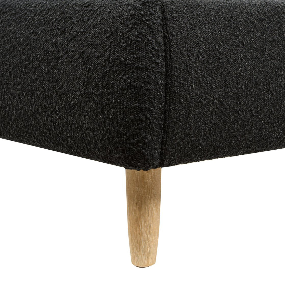 - Faux sherpa-like boucle upholstery is cozy and adds interesting texture