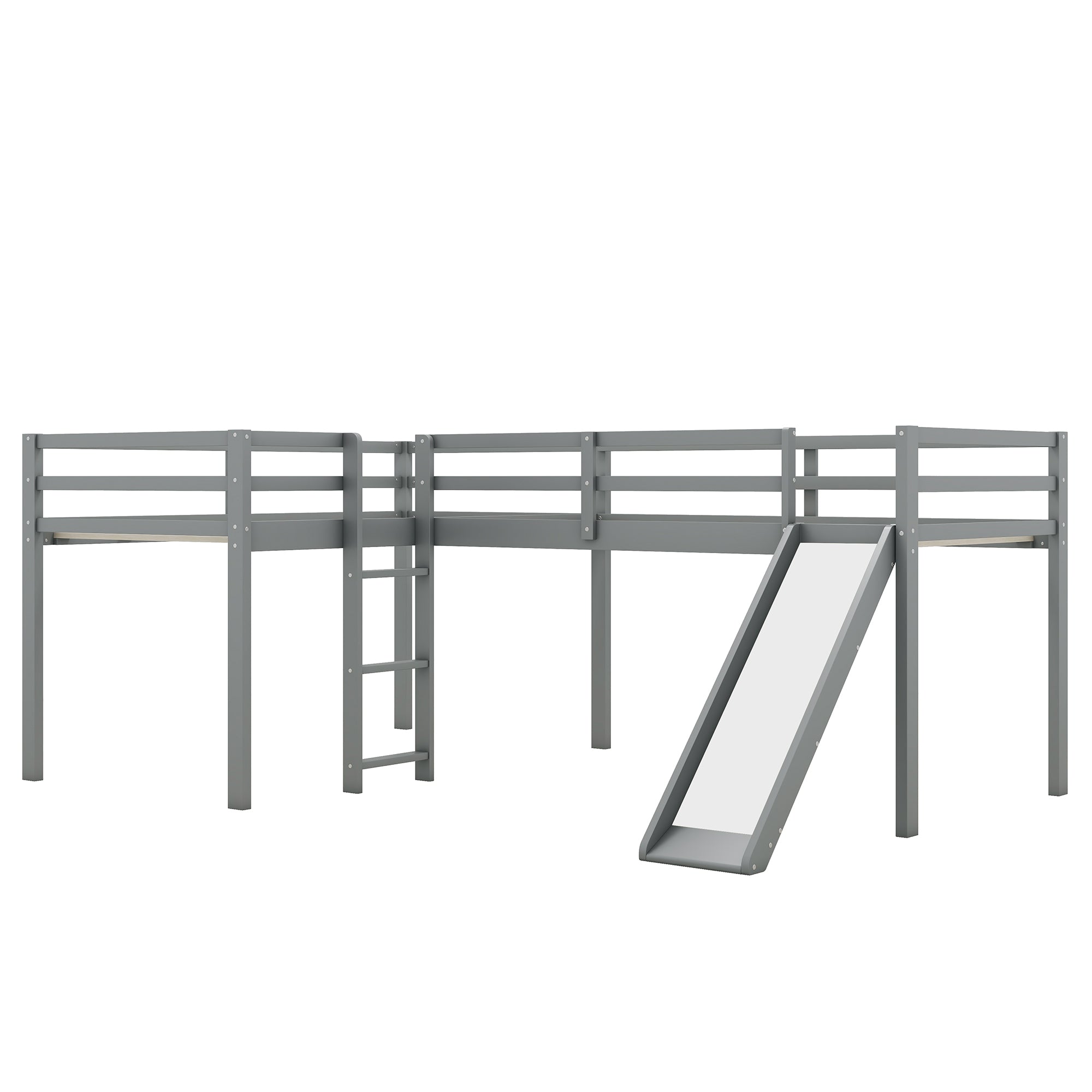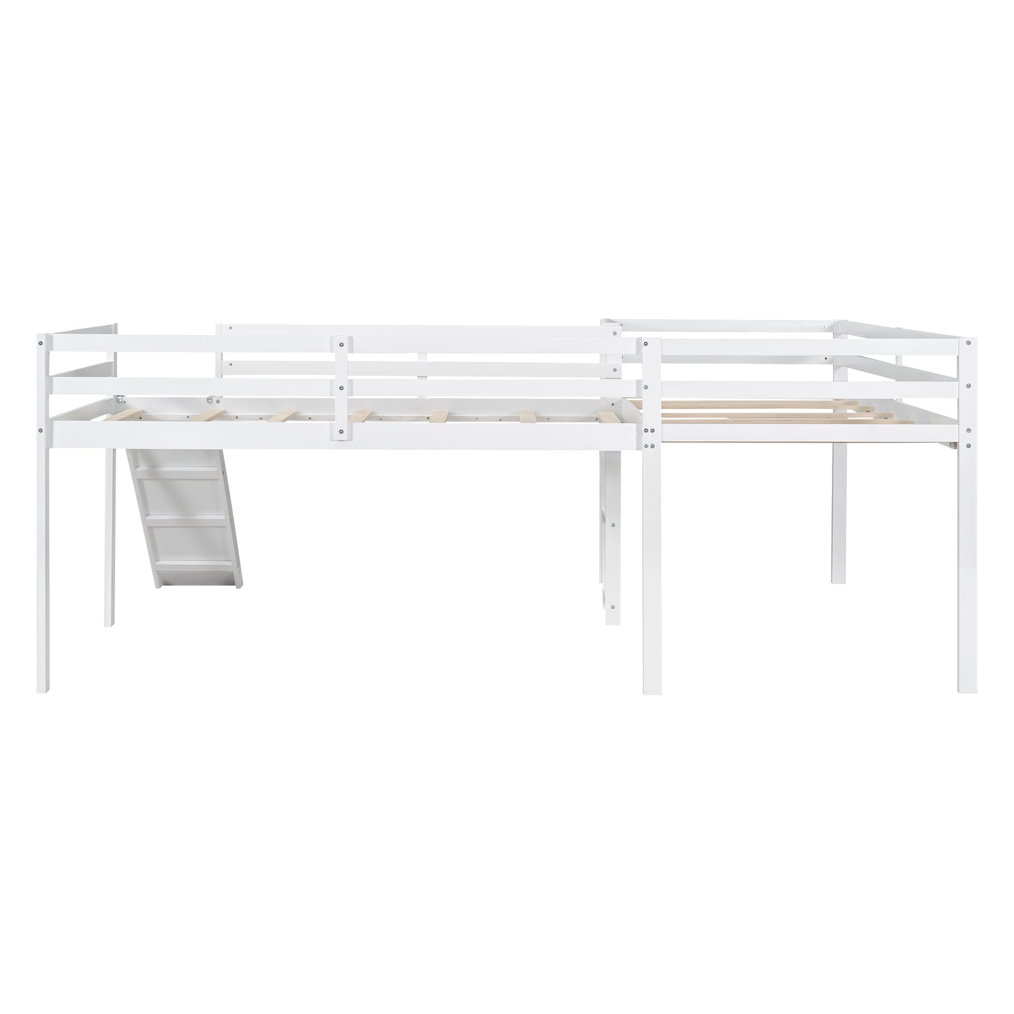 Transform your corner into a fun, space-saving sleep and play area with this L-shaped twin loft bed. Thoughtfully designed for durability and everyday use, it pairs two twin lofts in an L configuration to maximize floor space while providing individual sleeping areas, a widened ladder for safer access, and an integrated slide for play. Built from solid pine and high-quality MDF, it balances sturdy construction with a clean white finish to suit a variety of bedroom styles.