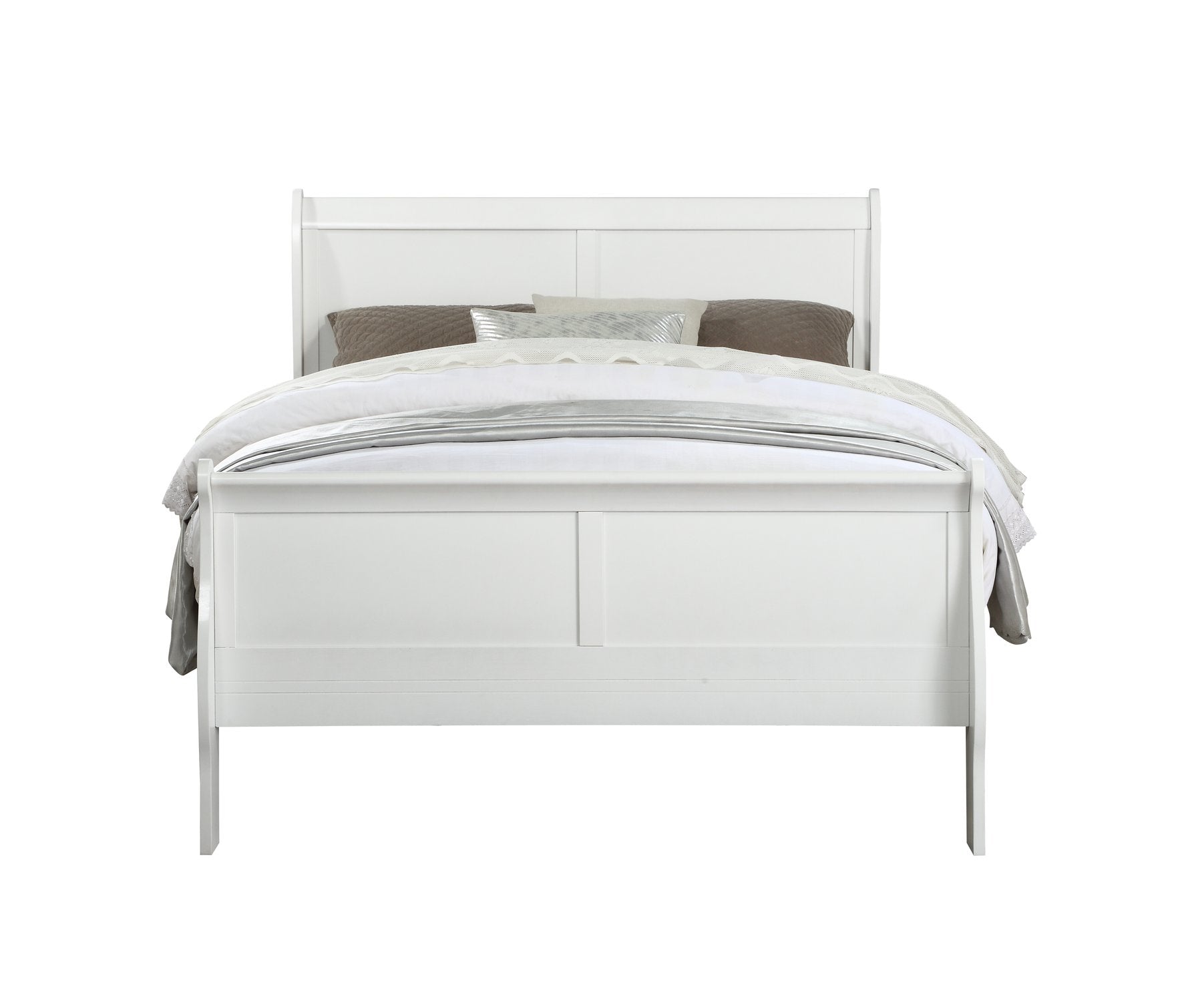 Bring classic charm and refined simplicity to your bedroom with this Louis Philippe–inspired twin sleigh bed in a crisp white finish. Its graceful curves and low-profile footboard create an airy, elegant look that complements both traditional and modern décor, while quality construction ensures lasting beauty and dependable performance.