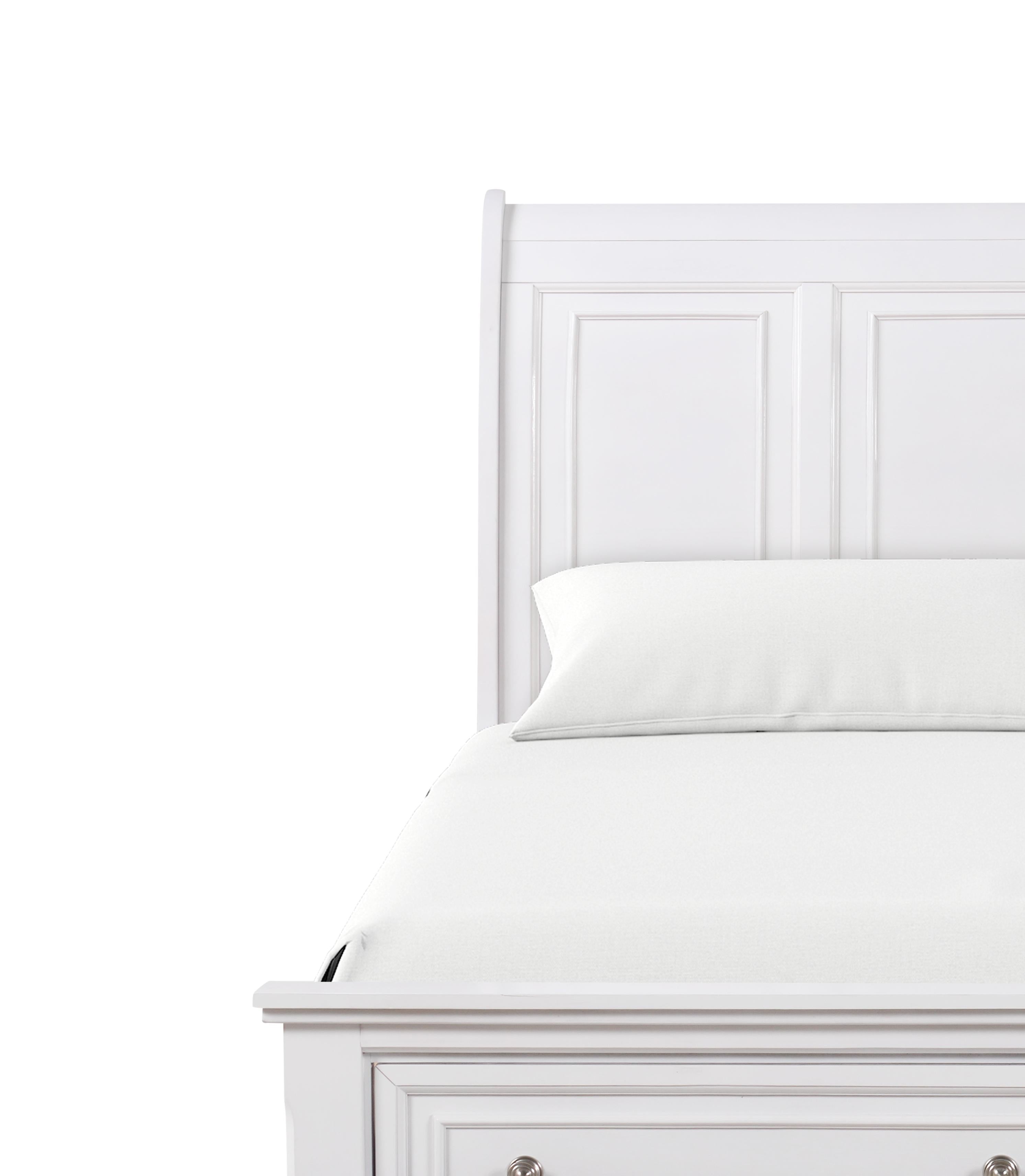 - This twin bed comes in a sophisticated white finish that enhances any bedroom decor.