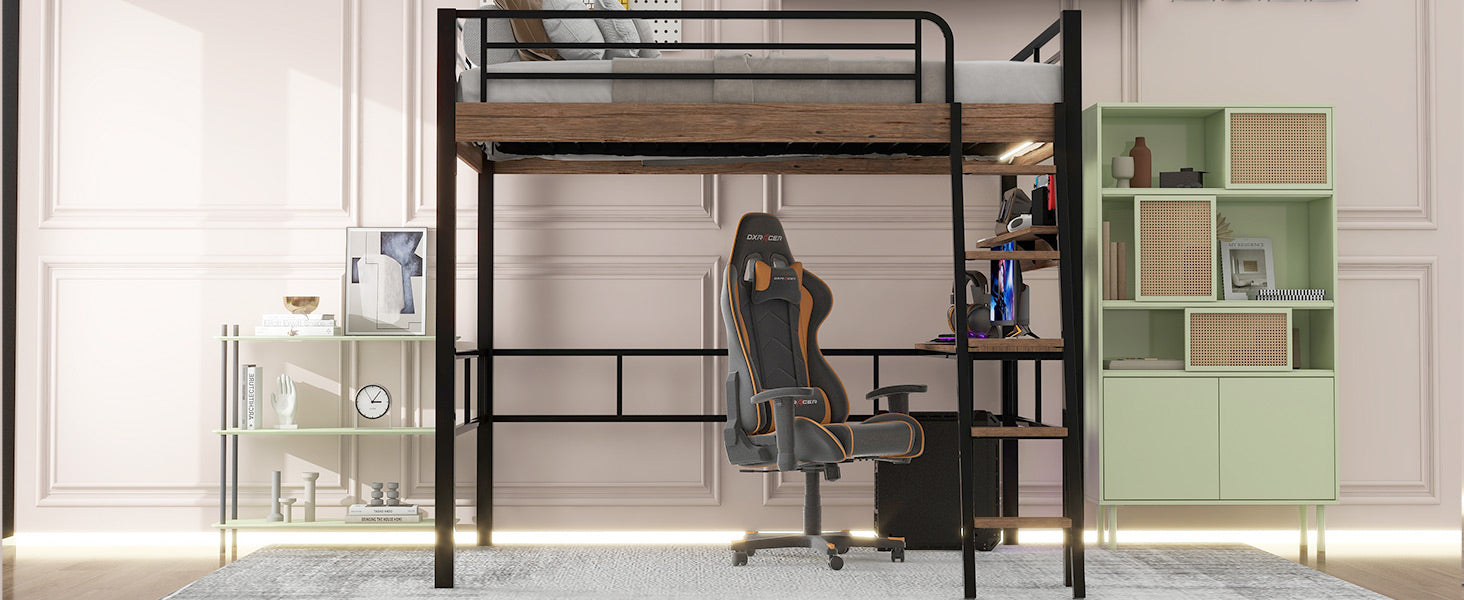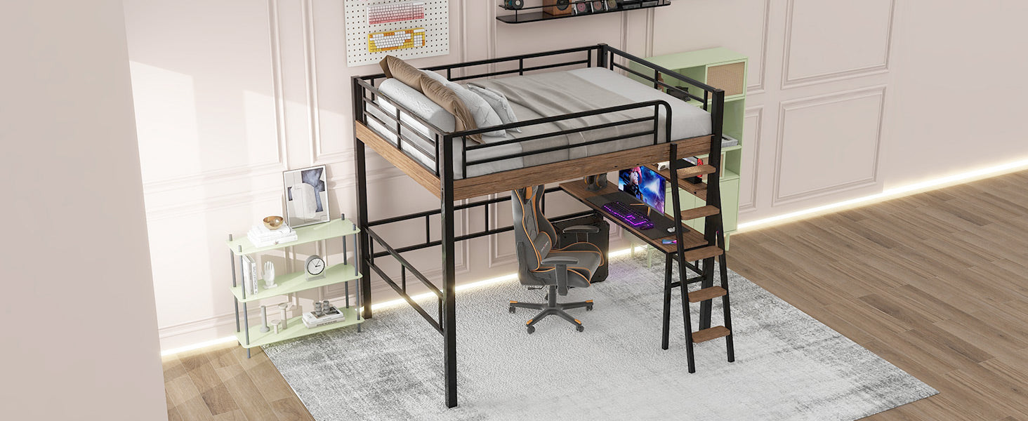 - Integrated workstation: Full-length metal desk provides ample room for a laptop, books, and study materials, turning the loft into a compact home office or study nook.