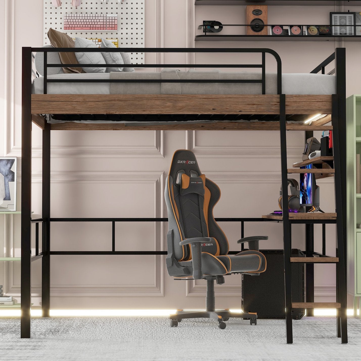 - [Space Saver] Desk, storage shelf and bed three in one, this loft bed is ideal for space-saving needs. There's plenty of room for user customization of the area underneath.Perfect dorm or guest room, or any other limited floor space.