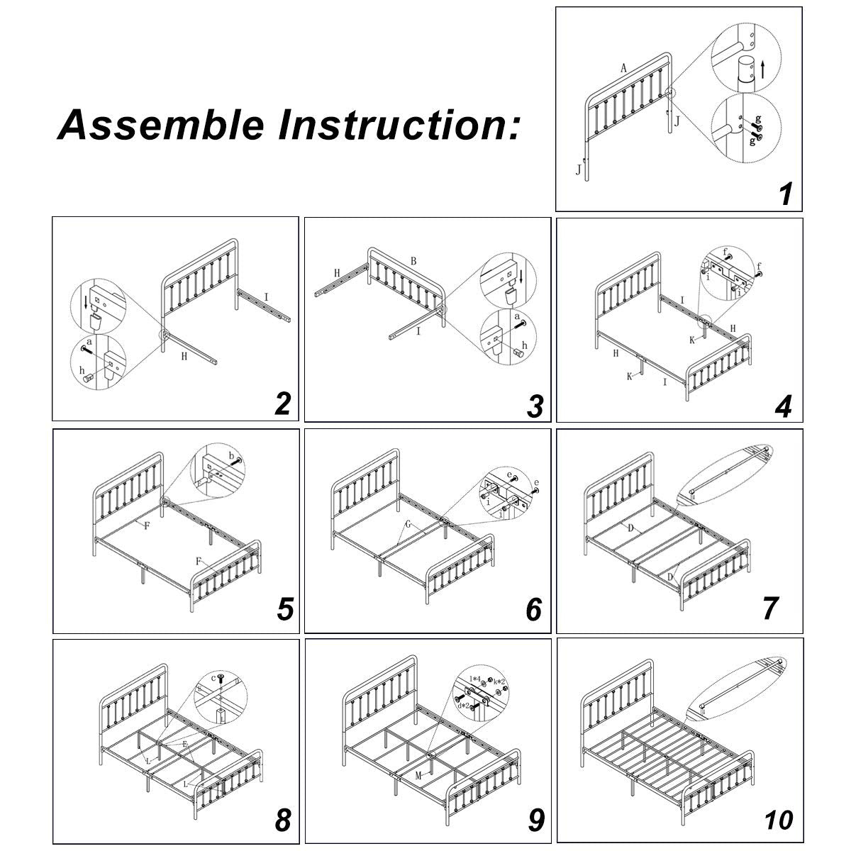 - 6. Easy Assembly: A clear and detailed instruction is included in the package. Just to follow the step-by-step manual, you will get a fashion and solid bed frame with no hassle. ( please noticed that the mattress, pillows and quilts are not included)