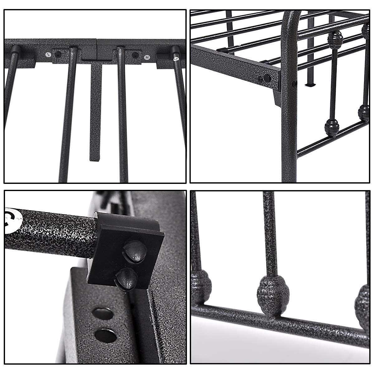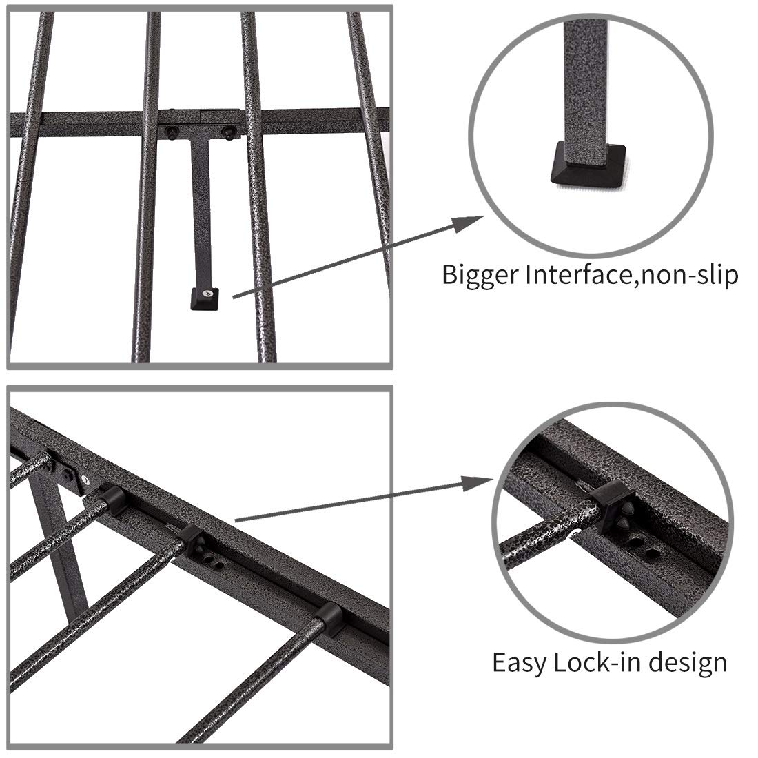 - 2. Sturdy Tube: The 13 sturdy steel slat support with 9 center support legs makes the metal bed more stable without any annoying sliding or creaking. It has a capacity of up to 450 pounds, which provides you with strong support for a relaxing sleep. The powder-coated surface features medium rust and scratch resistance for long term use.