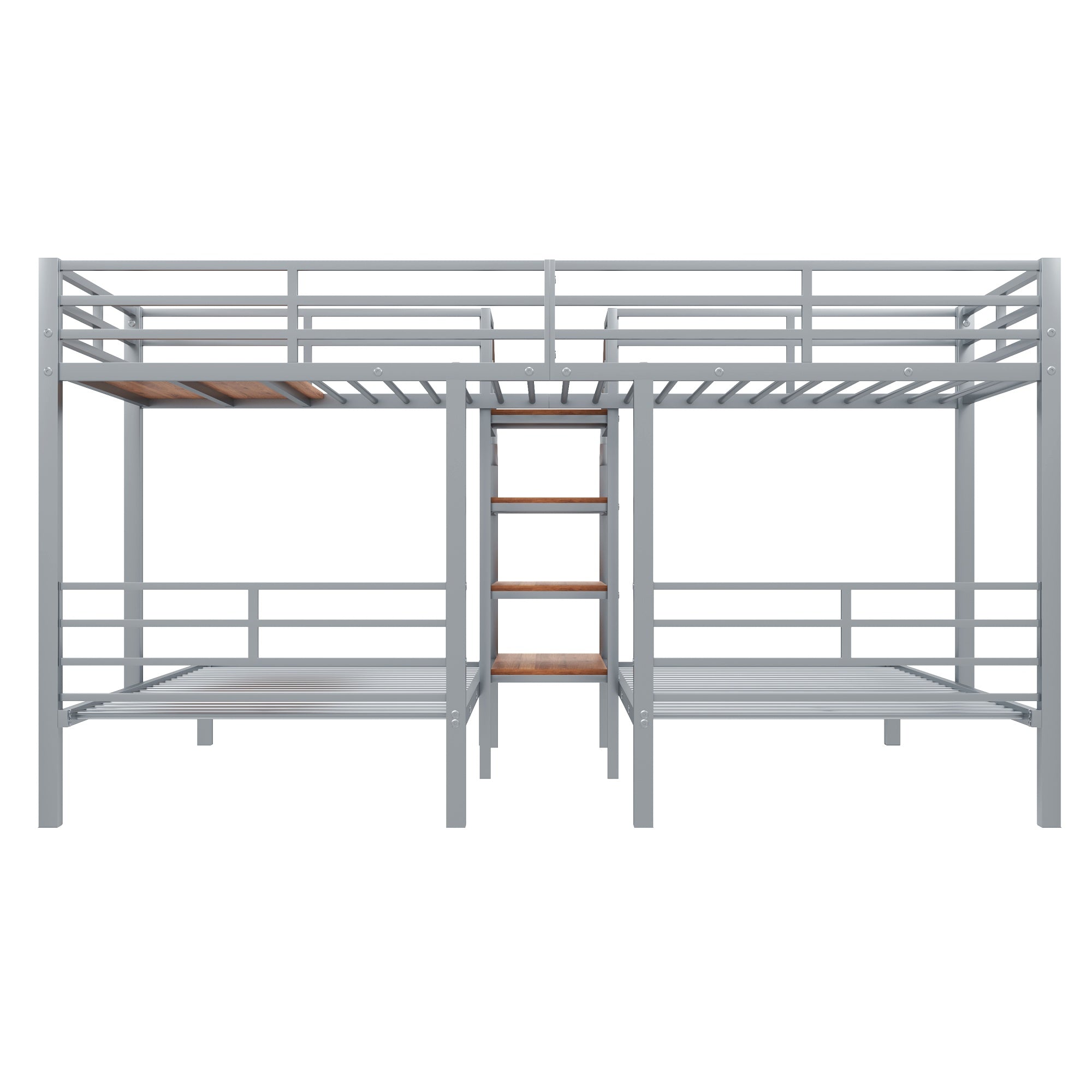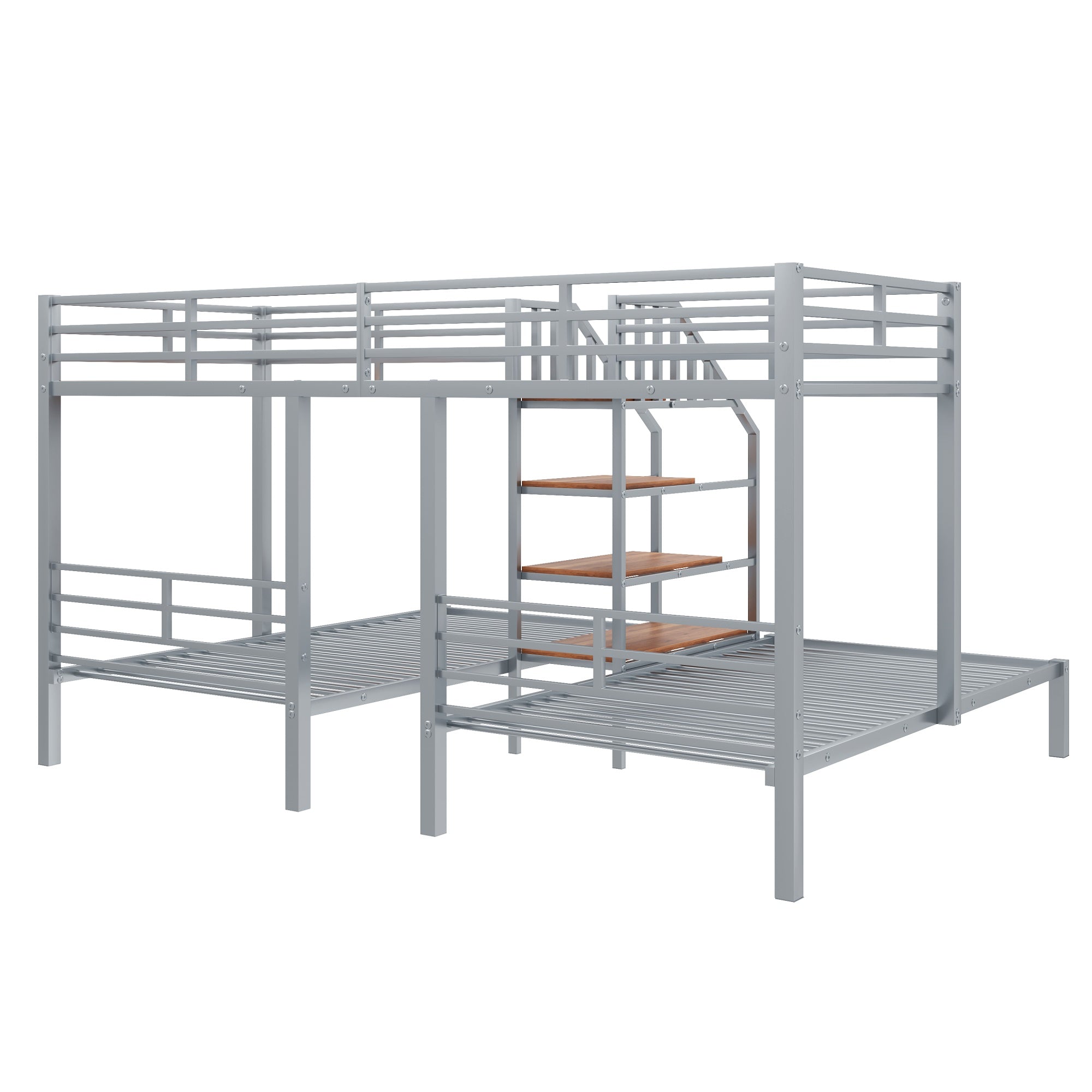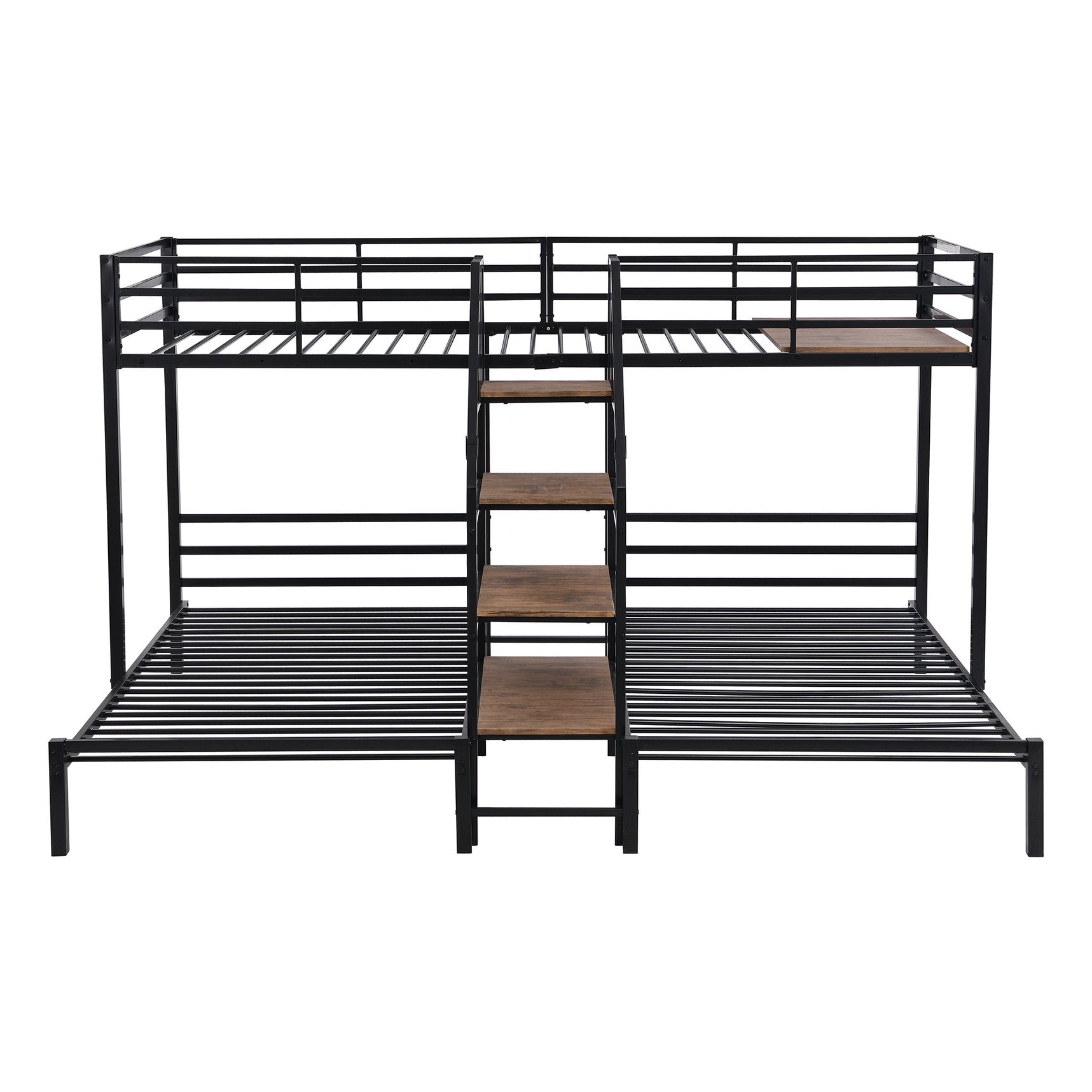 - Staircase with storage: Side staircase provides easy, safe access to the top bunk and built-in shelving compartments for shoes, books, or toys.