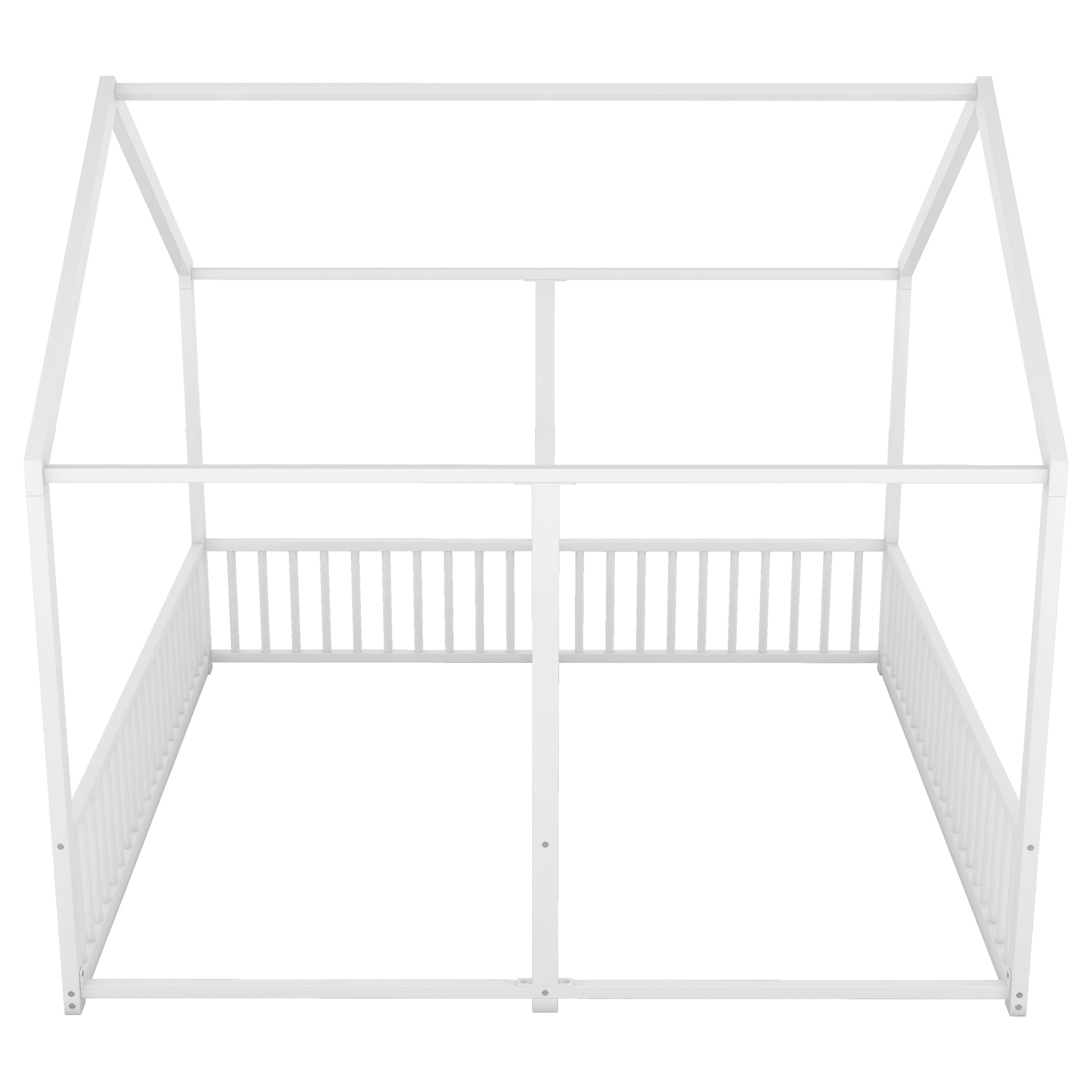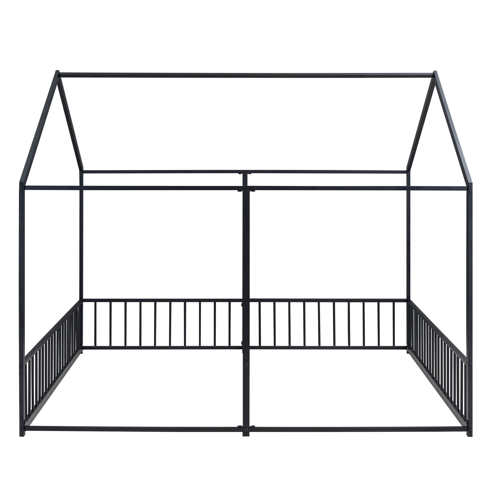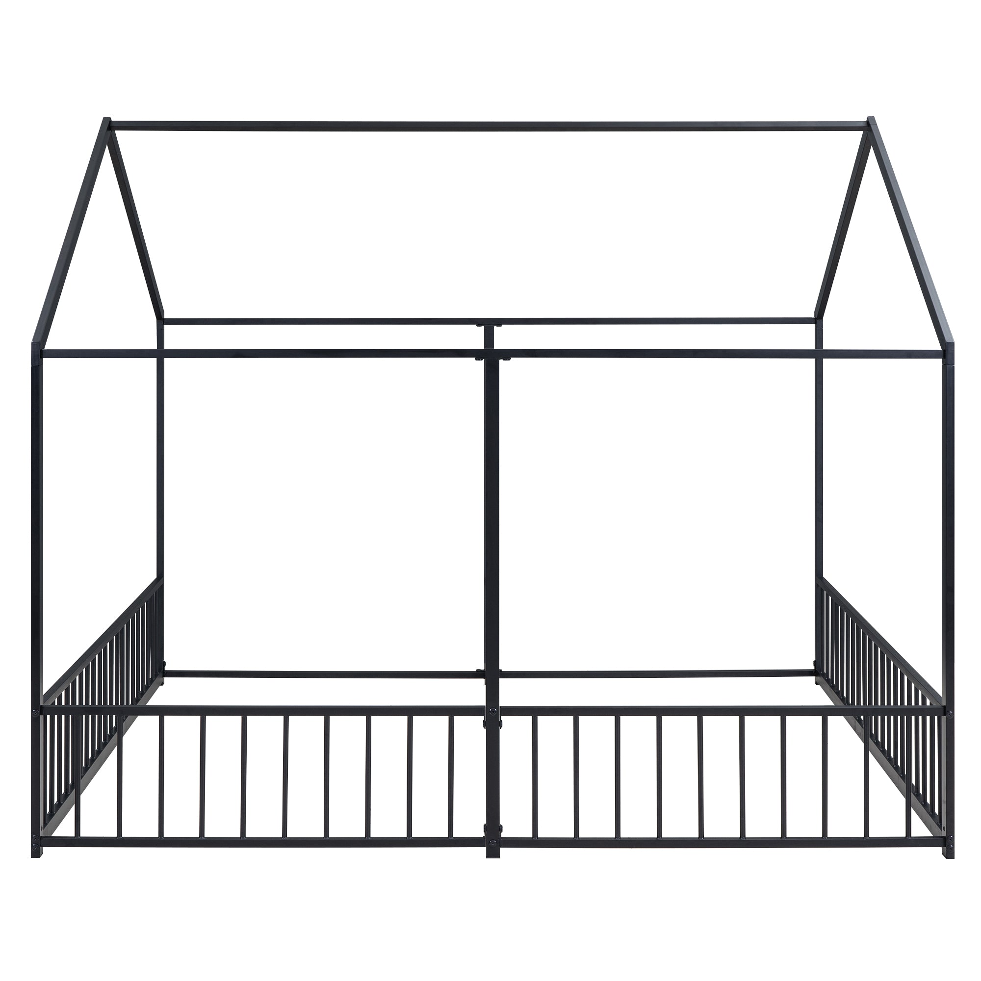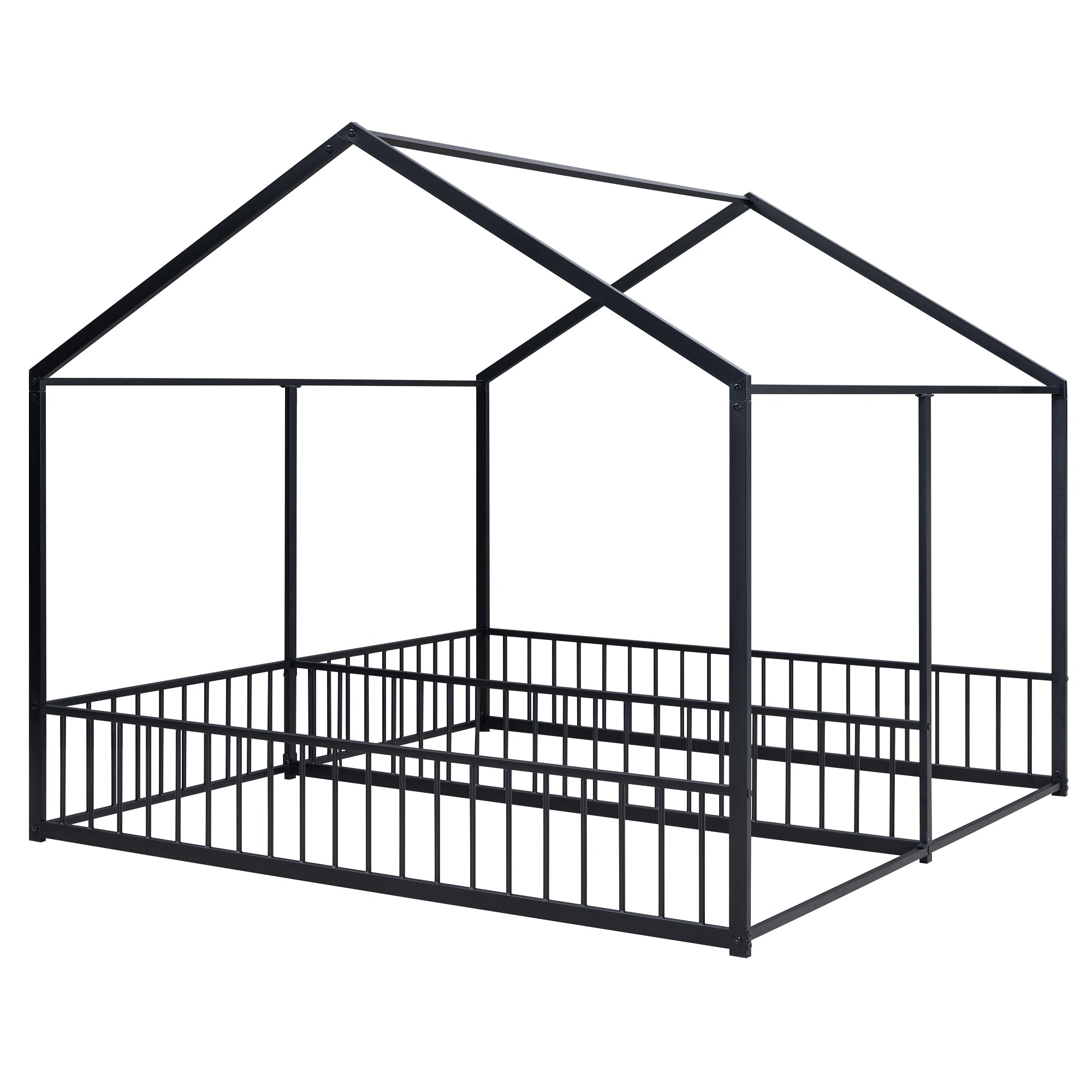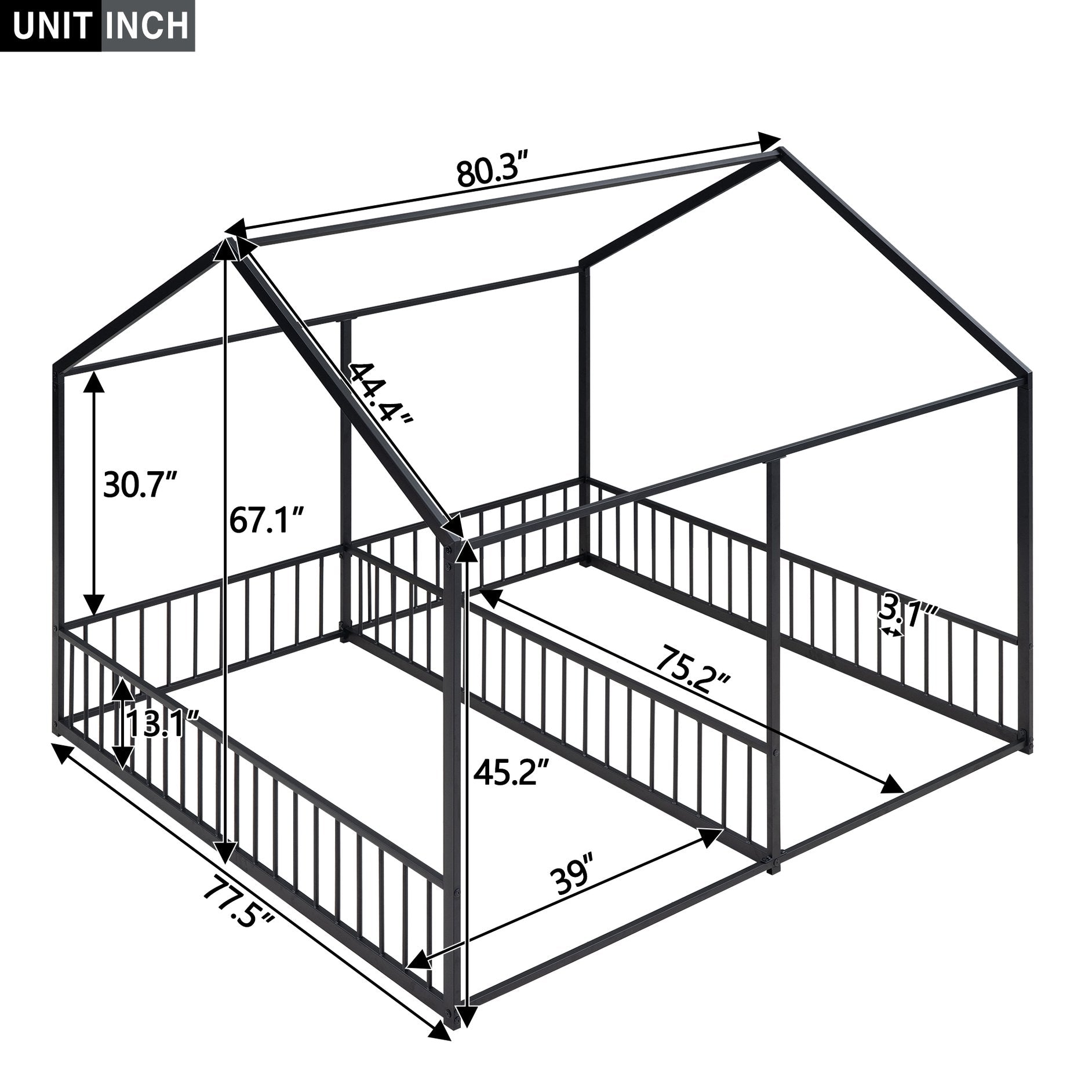 Give your children a fun, space-saving sleeping solution with this sturdy metal twin house platform bed designed as two shared beds side-by-side. With playful roof and window details, integrated guardrails for safety, and a durable metal frame, it’s ideal for siblings, sleepovers, or a compact guest room. Easy to assemble and ready for an 8" mattress, this bed combines safety, style, and practicality in a single compact footprint.