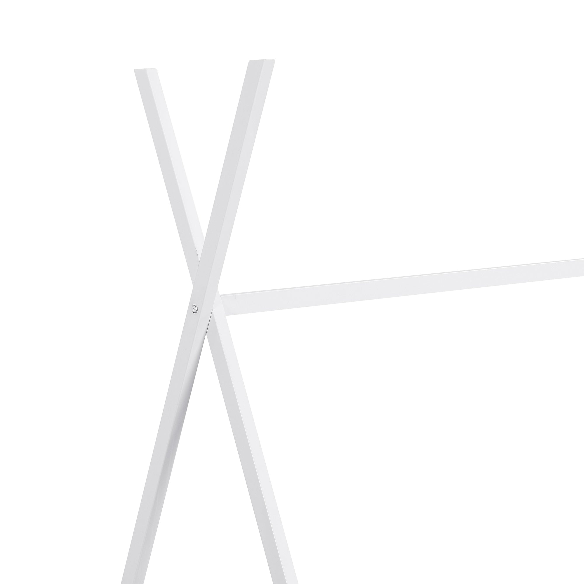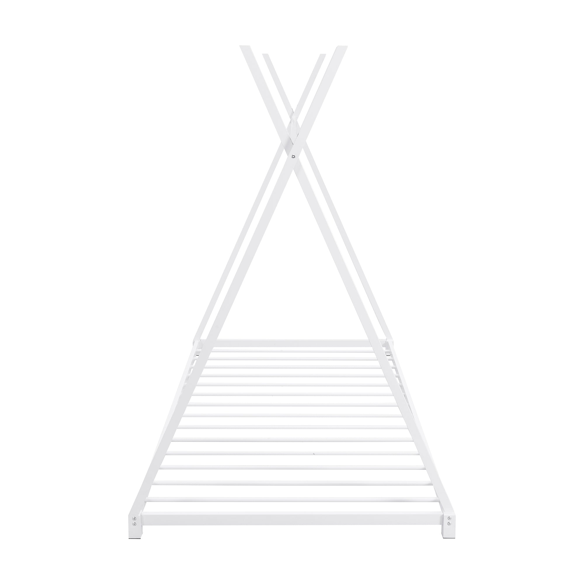 Give your child a playful, cozy retreat with this twin-size house platform bed. Combining a sturdy metal frame with a charming house-shaped silhouette, it’s designed to inspire imaginative play while providing a low-profile, safe sleeping surface that’s easy for little ones to climb into. The clean white finish fits a variety of décor styles, and the open roof frame creates opportunities to personalize with lights, fabric drapes, or hanging toys.