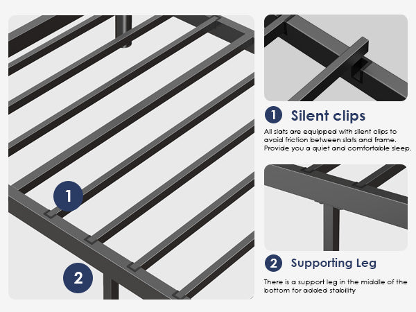 - No Box Spring Required: Heavy metal slats support your mattress without the need for a box spring. Fixed slats and raised sides hold the mattress in place, preventing it from sliding. Suitable for 1 twin and 1 full mattress (sold separately).