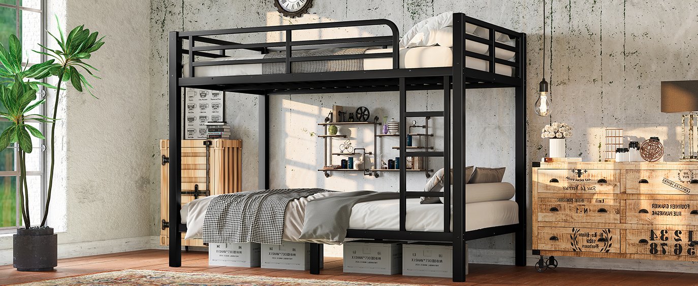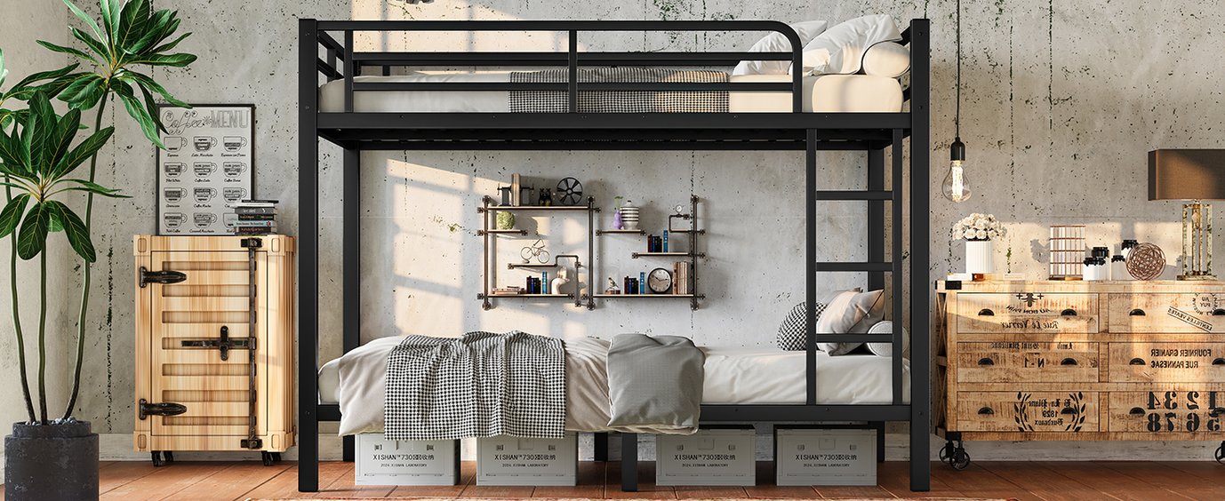 Give your home a smart, space-saving sleep solution with this heavy-duty metal twin-over-twin bunk bed — engineered for teens and adults who need strength, stability, and a quiet night’s rest. Its robust steel construction and reinforced frame minimize wobble and noise, while a low-profile design eliminates the need for a box spring so you can set up comfortable sleeping spaces quickly and confidently.
