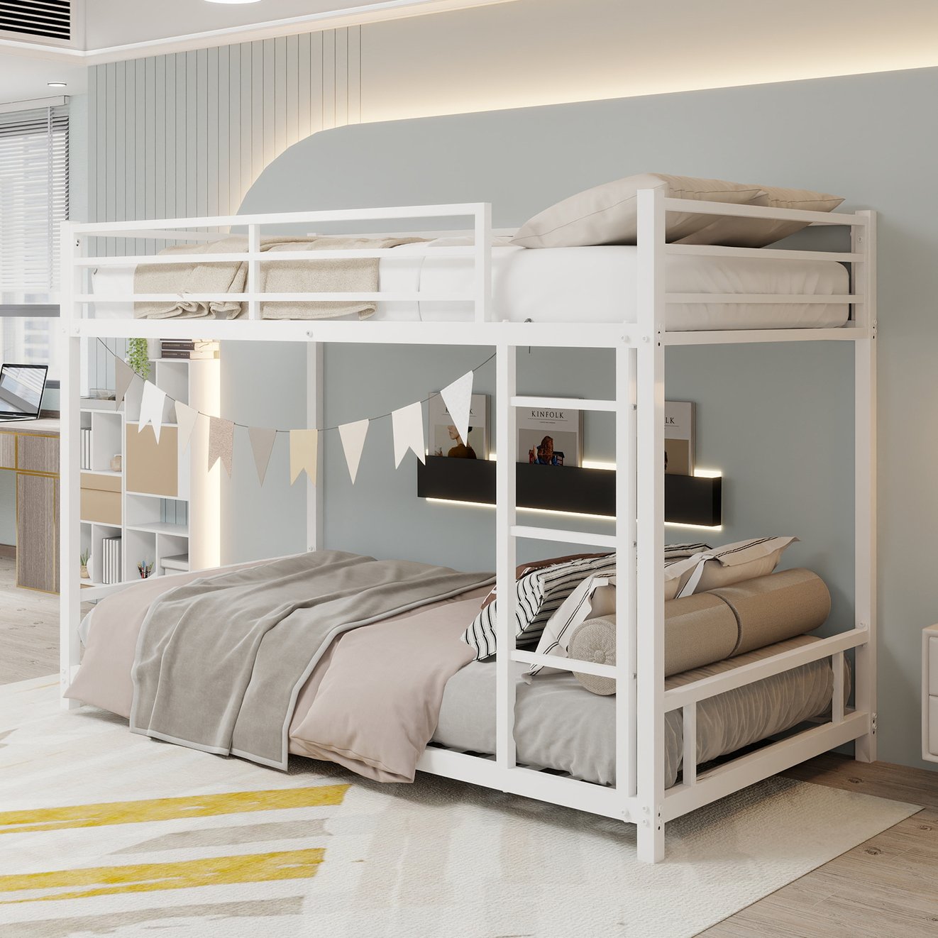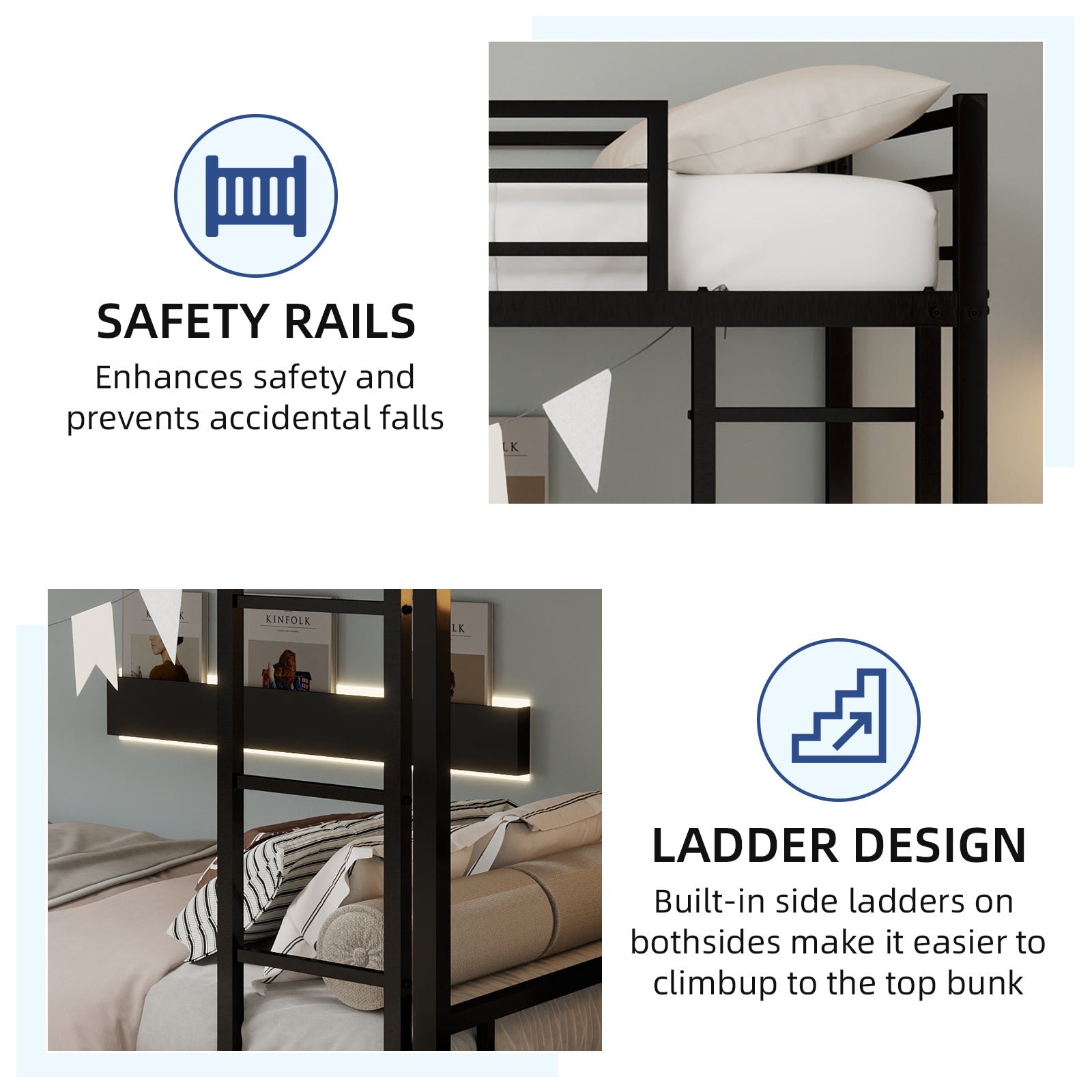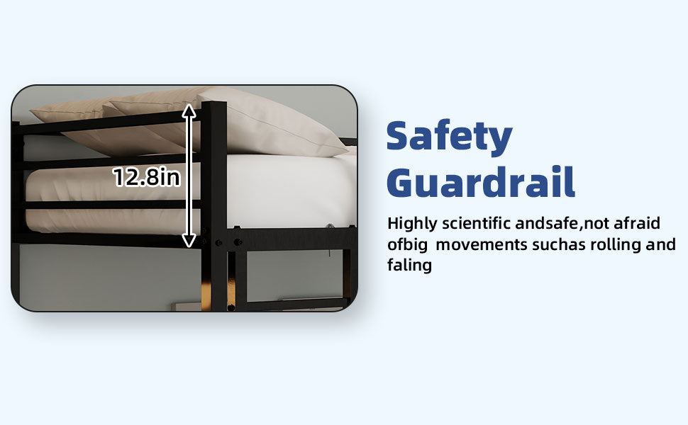 - Secure guardrails: Full-length safety rail on the upper bunk helps prevent accidental falls during sleep.