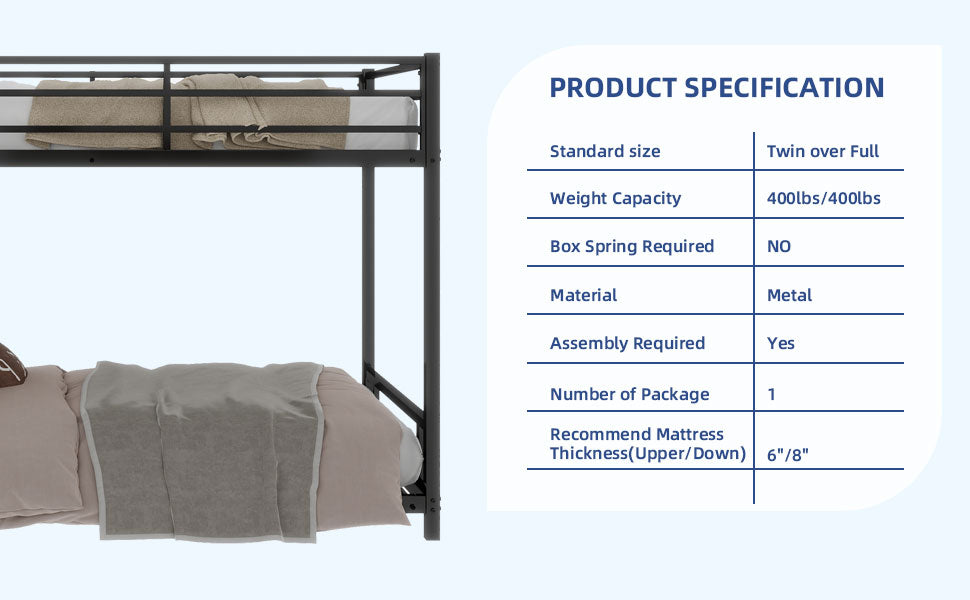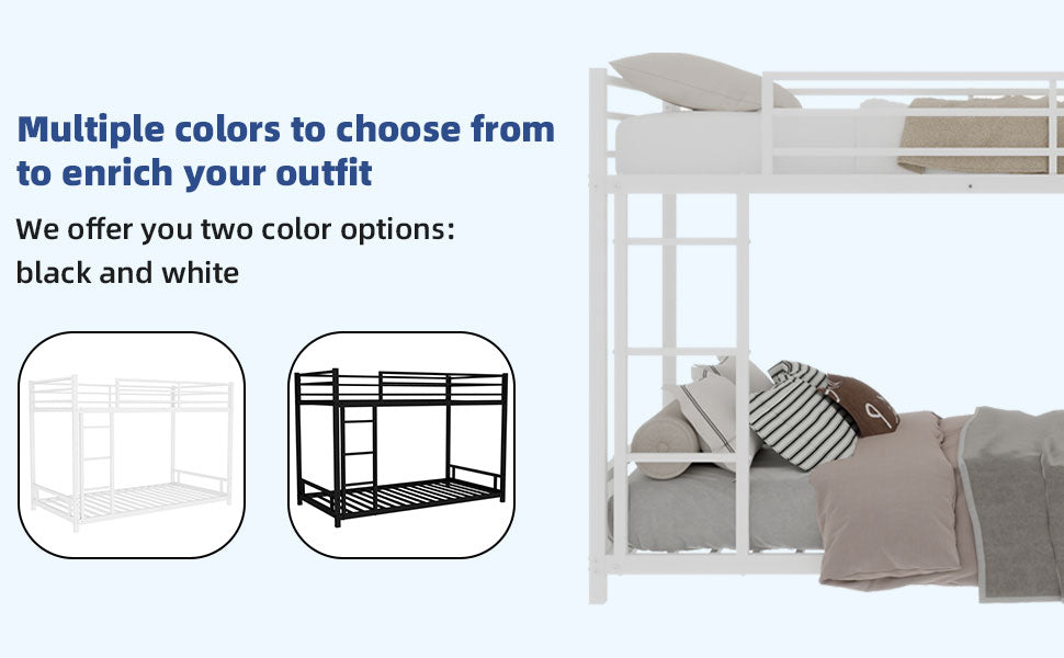 Give your bedroom a clean, space-saving upgrade with this heavy-duty metal twin-over-twin bunk bed. Built for durability and quiet performance, it’s engineered to maximize safety and mattress support without the need for a box spring — ideal for kids’ rooms, guest rooms, or shared living spaces.
