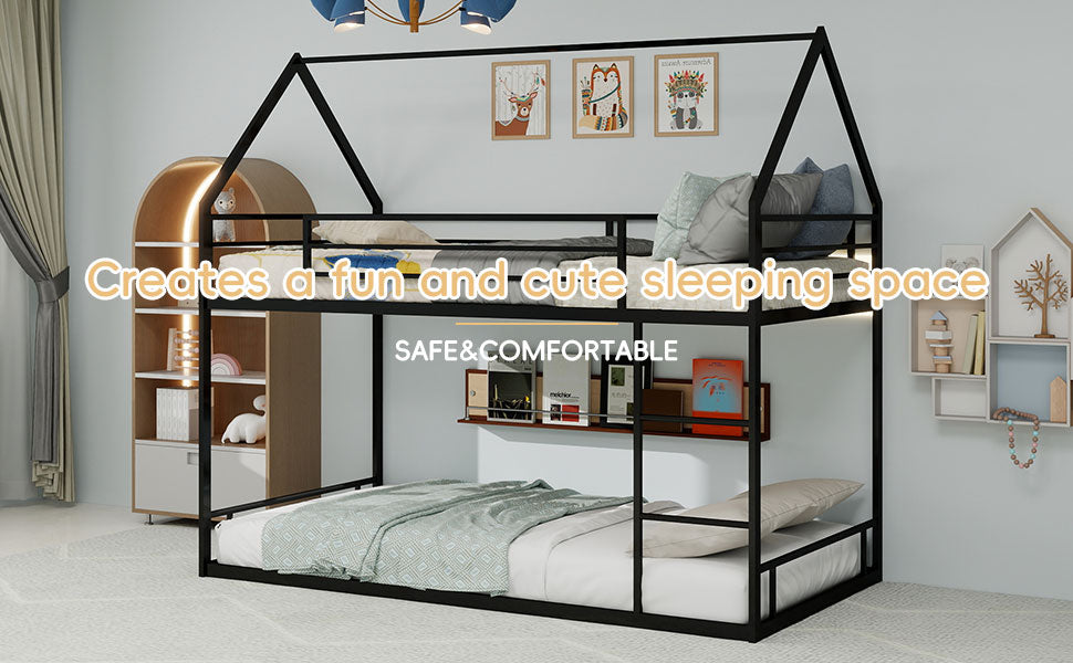 - IDEAL FOR SMALL HOUSES: lower beds are low to the ground and upper beds are easy to reach. Perfect for children's rooms and small houses with limited space, this low profile modern bunk bed has a frame height of only 49.21".