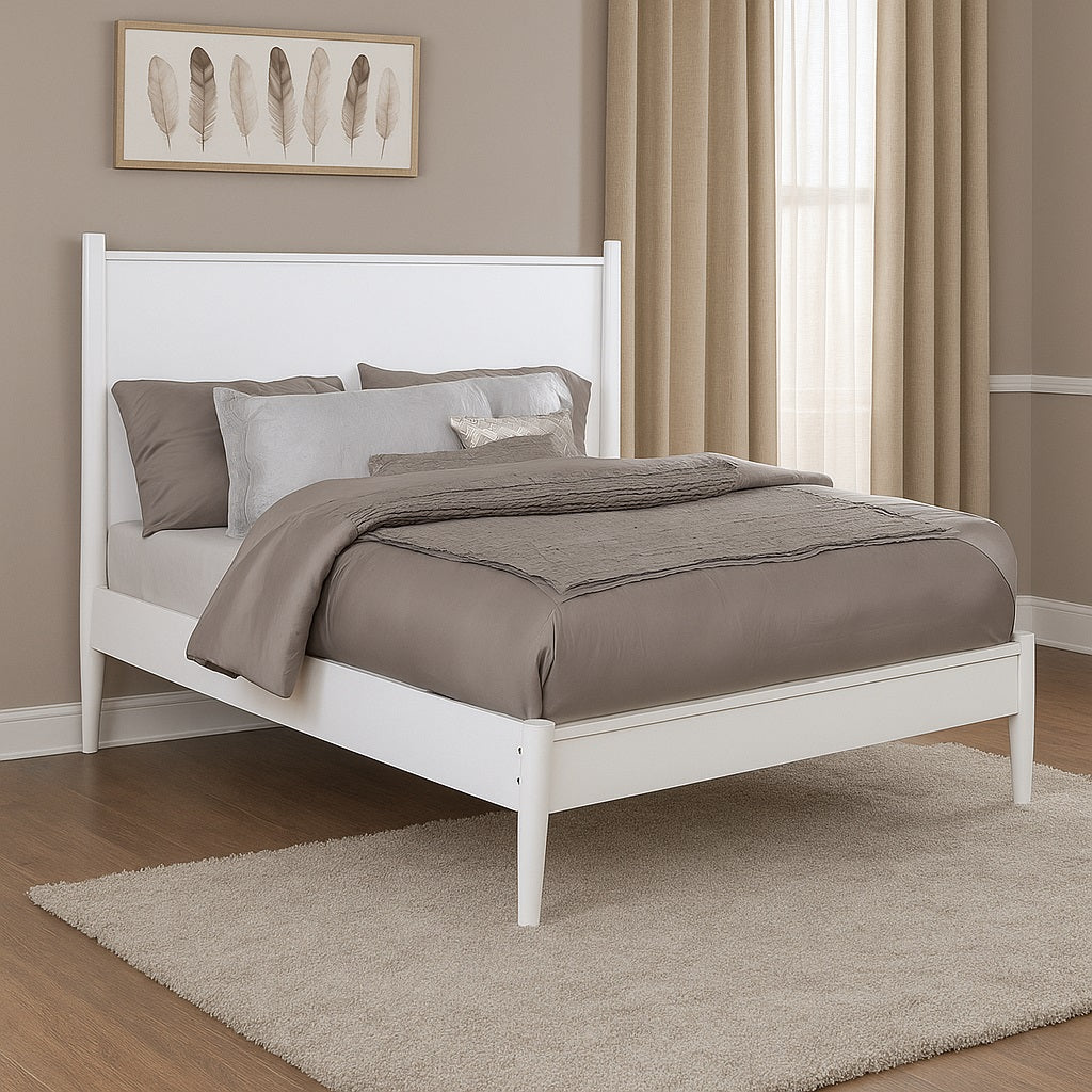 Elevate your bedroom with a refined Mid-Century Modern platform bed that blends clean lines and practical design. The white finish and tapered legs create a versatile focal point that complements contemporary and classic decor, while the tall headboard offers comfortable back support for reading or lounging. Thoughtful construction and a slatted base deliver durable mattress support without the need for a box spring.