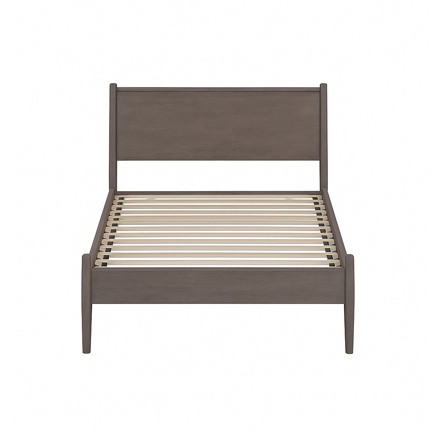 Bring mid-century charm and modern practicality to a small bedroom with this Twin platform bed, designed to combine clean lines, durable construction, and everyday comfort. Its neutral gray finish and tapered legs create a timeless look that fits a variety of decor styles while the slatted support system provides mattress ventilation and eliminates the need for a box spring.