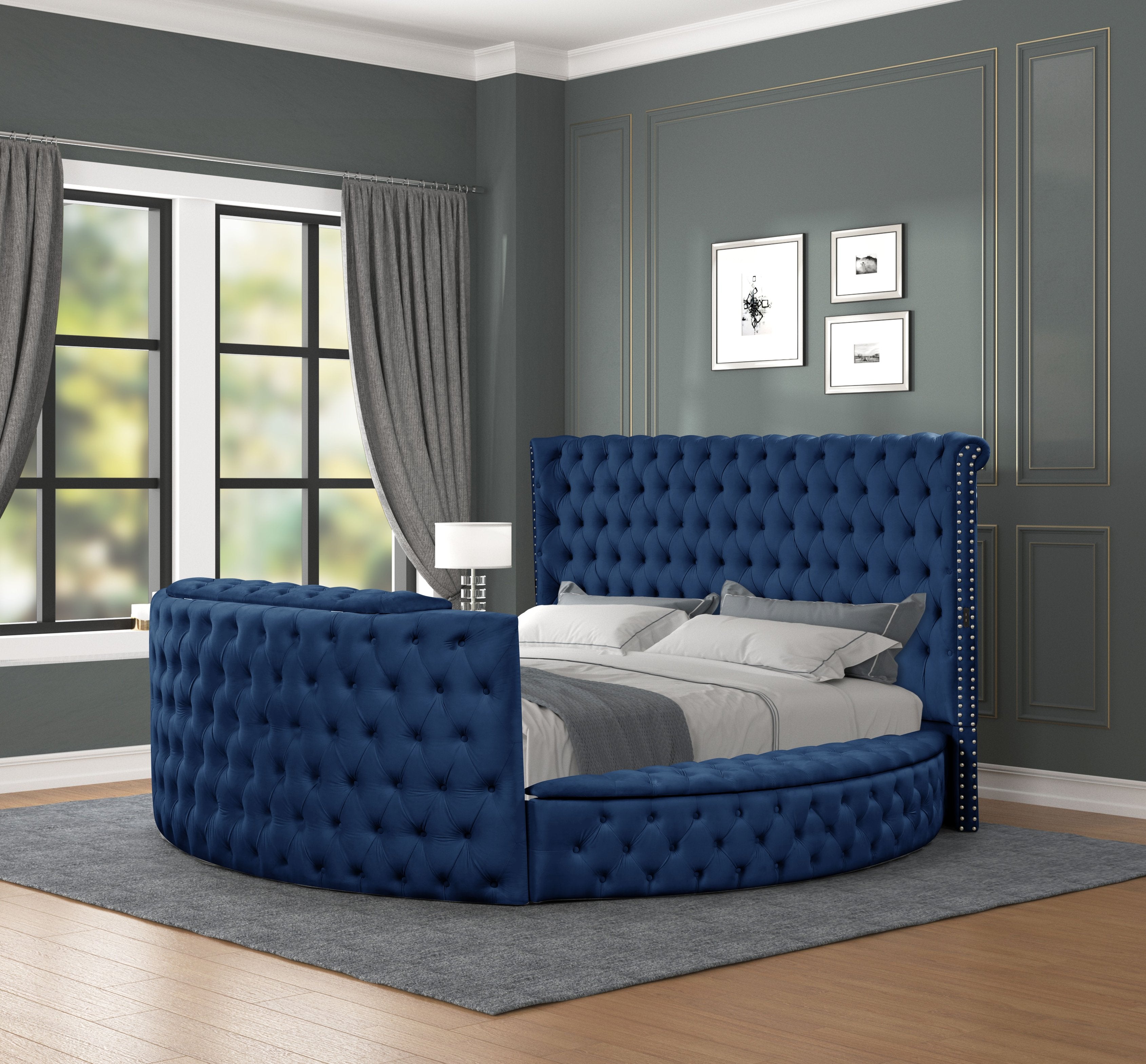 - Upholstery: Plush tufted velvet fabric on headboard and footboard for a rich, hotel-like look and comfortable backrest.