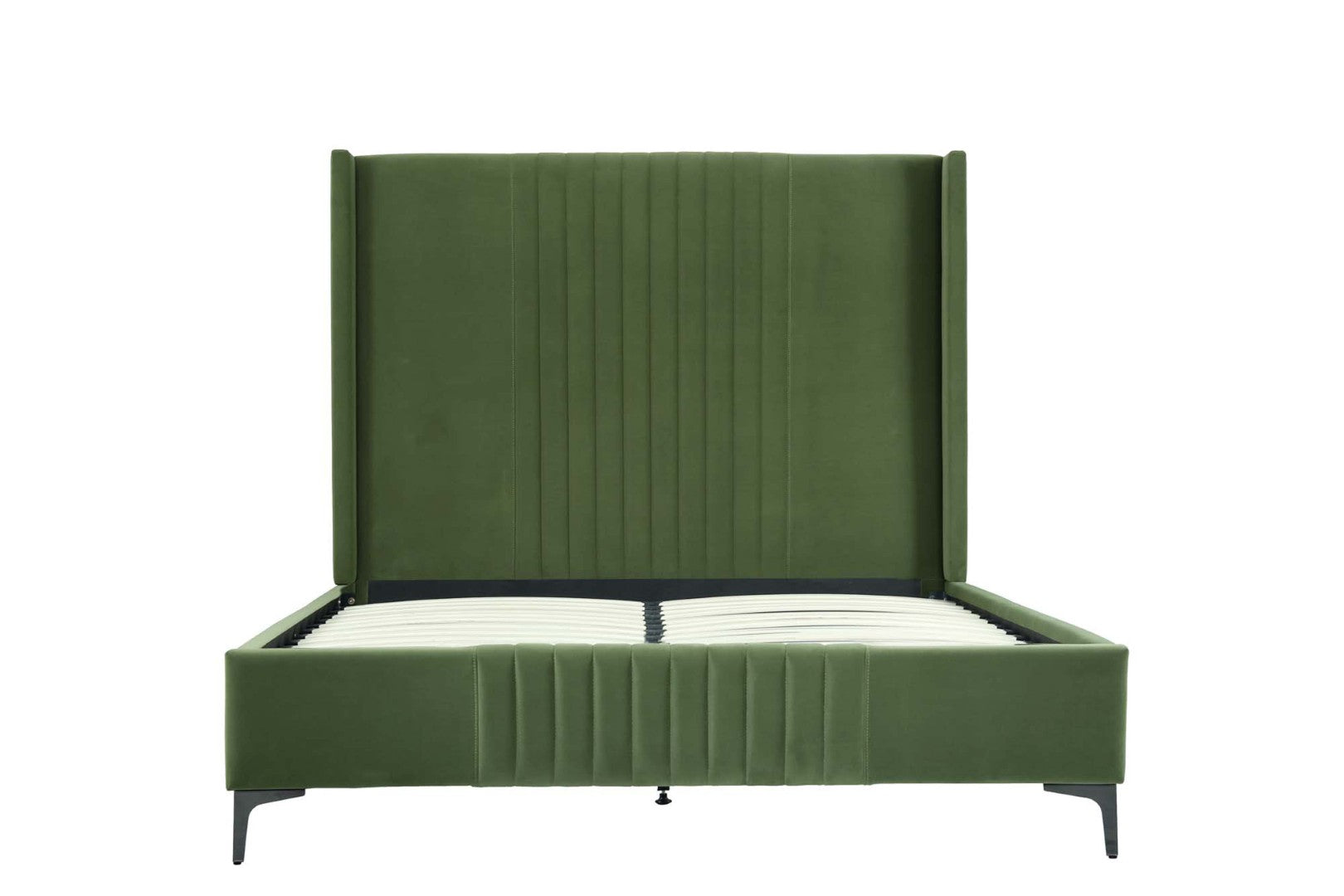 Elevate your bedroom with the Promenade Upholstered Velvet Queen Bed in Moss Green — a refined centerpiece that blends modern silhouette with plush comfort. Its vertically stitched headboard and sumptuous velvet upholstery create a sophisticated focal point, while thoughtful construction and included slats make setup and everyday use simple and durable.