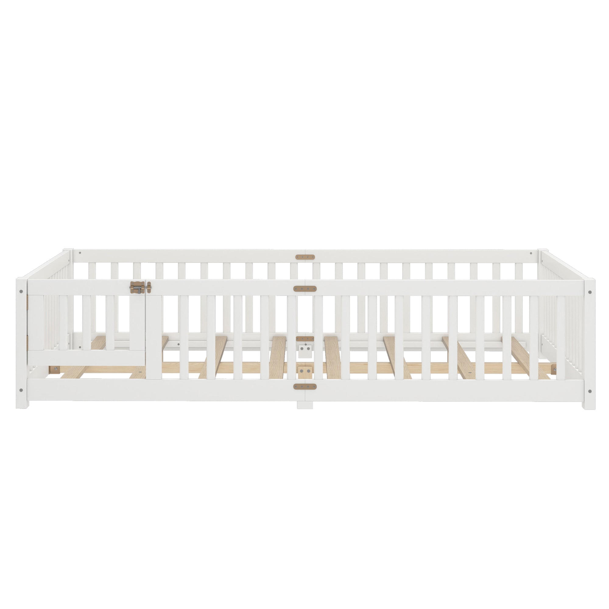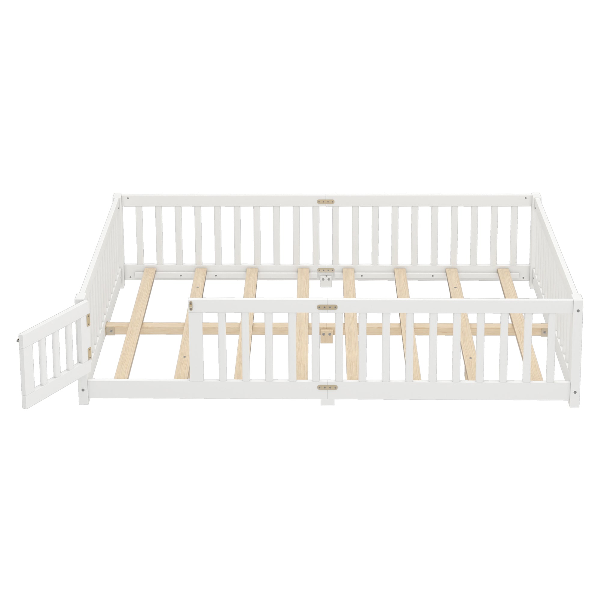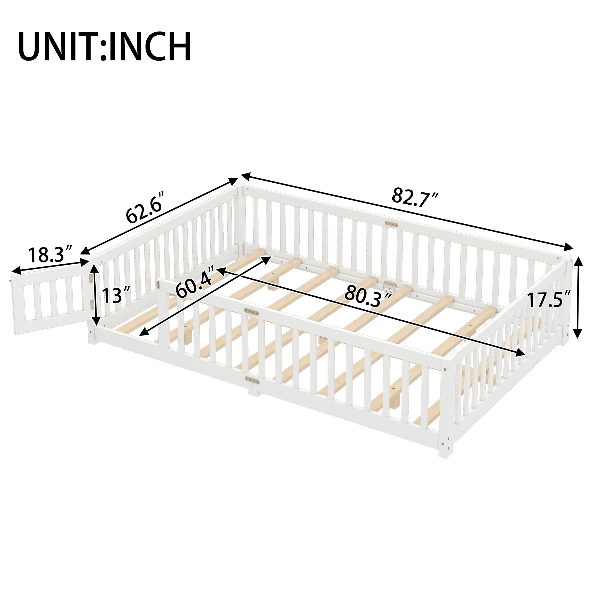 Create a cozy, secure, and child-friendly sleeping space with this low-profile queen floor bed. Its guarded rails and soft white finish provide a nurturing environment that helps children transition from co-sleeping to independent sleep while still feeling safe and close to the floor — ideal for bedtime stories, naps, and everyday use.