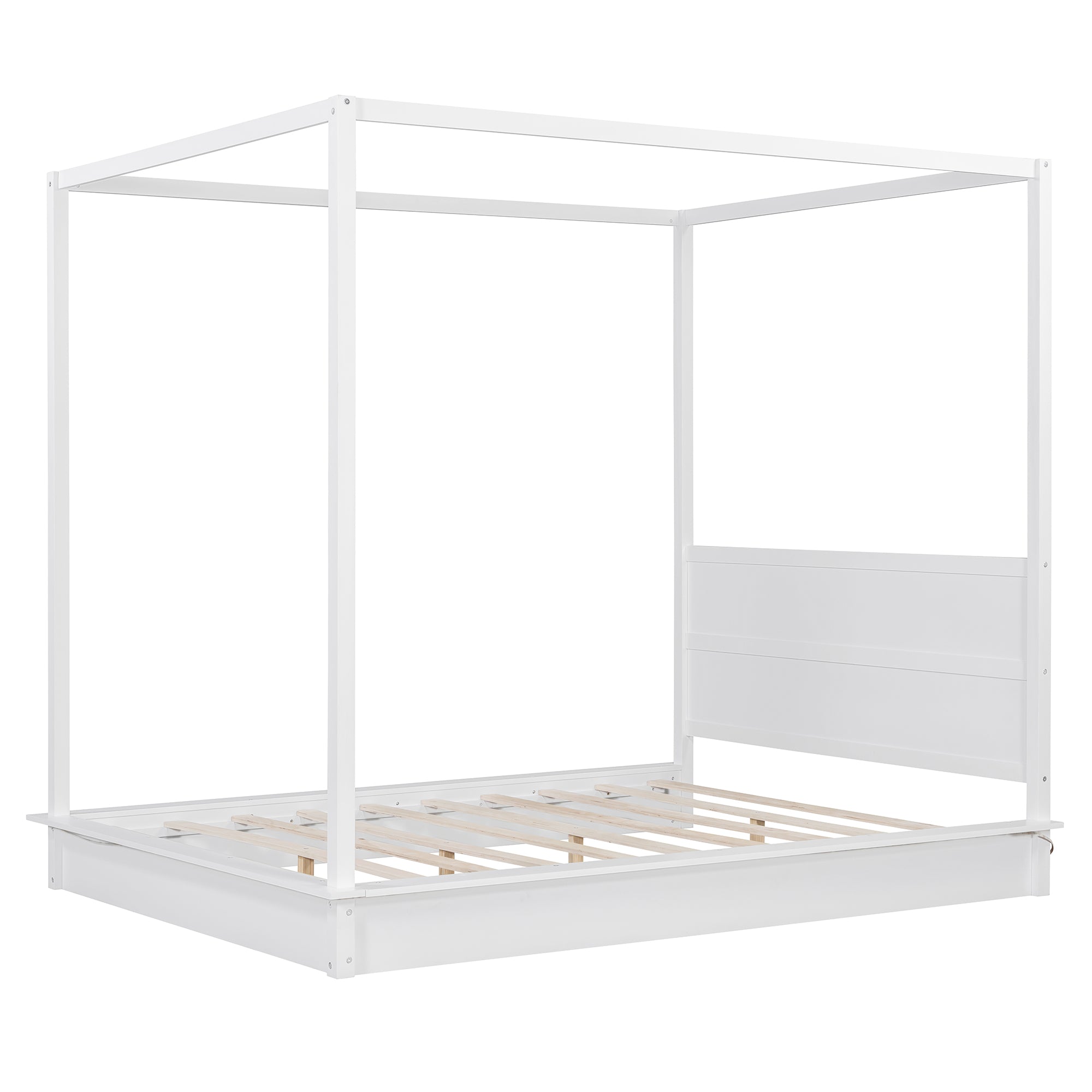 - [Modern Design] Wooden canopy bed with brushed-effect finish has a sleek exterior profile, traditional wooden headboard, with clean lines for a timeless look
