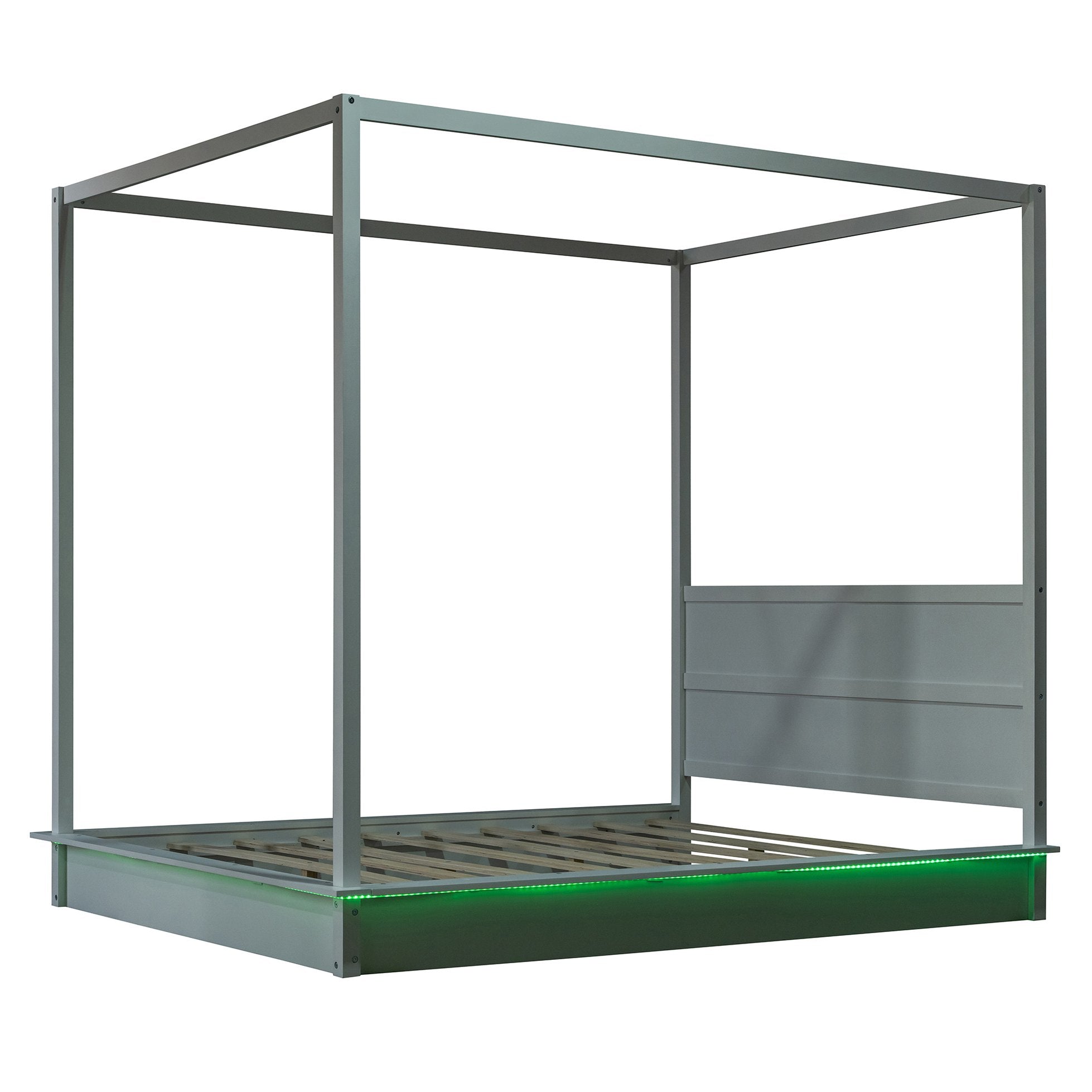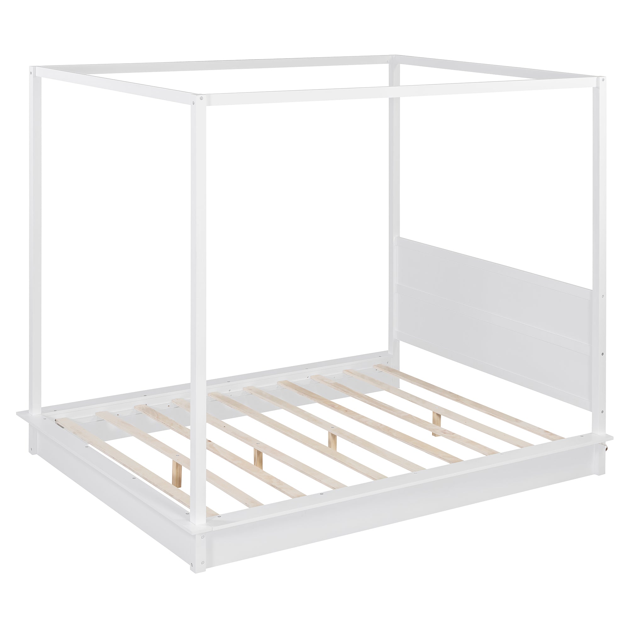 Transform your bedroom into a modern sanctuary with this elegant white queen canopy platform bed. Its clean lines, built-in LED accents, and full-length top rails offer a contemporary focal point and the flexibility to personalize with drapes or greenery. Designed as a low-maintenance platform bed, it eliminates the need for a box spring while providing sturdy support and a refined silhouette that complements a variety of décor styles.