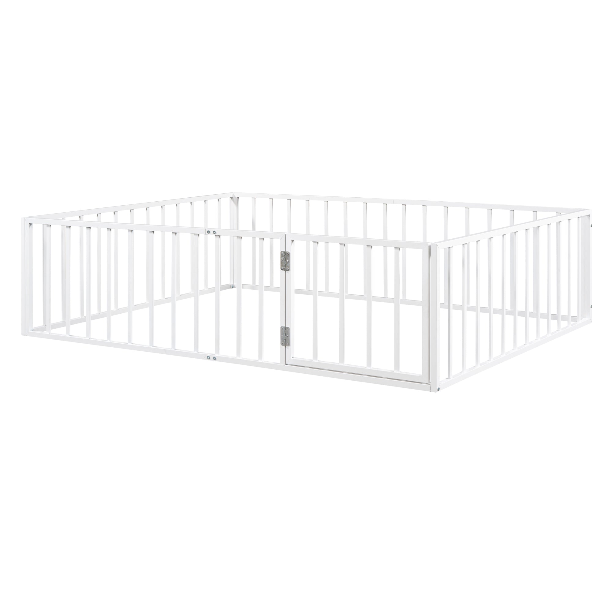 Bring a charming, safe, and stylish focal point to a child’s bedroom with this Queen-size metal floor bed. Its graceful fence-style frame and functional little door create a cozy, playhouse-like atmosphere while the clean silhouette and durable metal construction fit a variety of décor styles. Designed for low-to-the-floor sleeping and easy access, the bed pairs best with a 6–8" mattress and supports everyday use with a sturdy metal build.